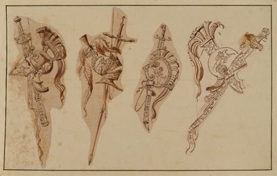 Charles PERCIER Quatre projets de couvre-chefs militaires de…