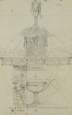 Charles PERCIER Projet de fontaine au lion ailé Plume et enc…