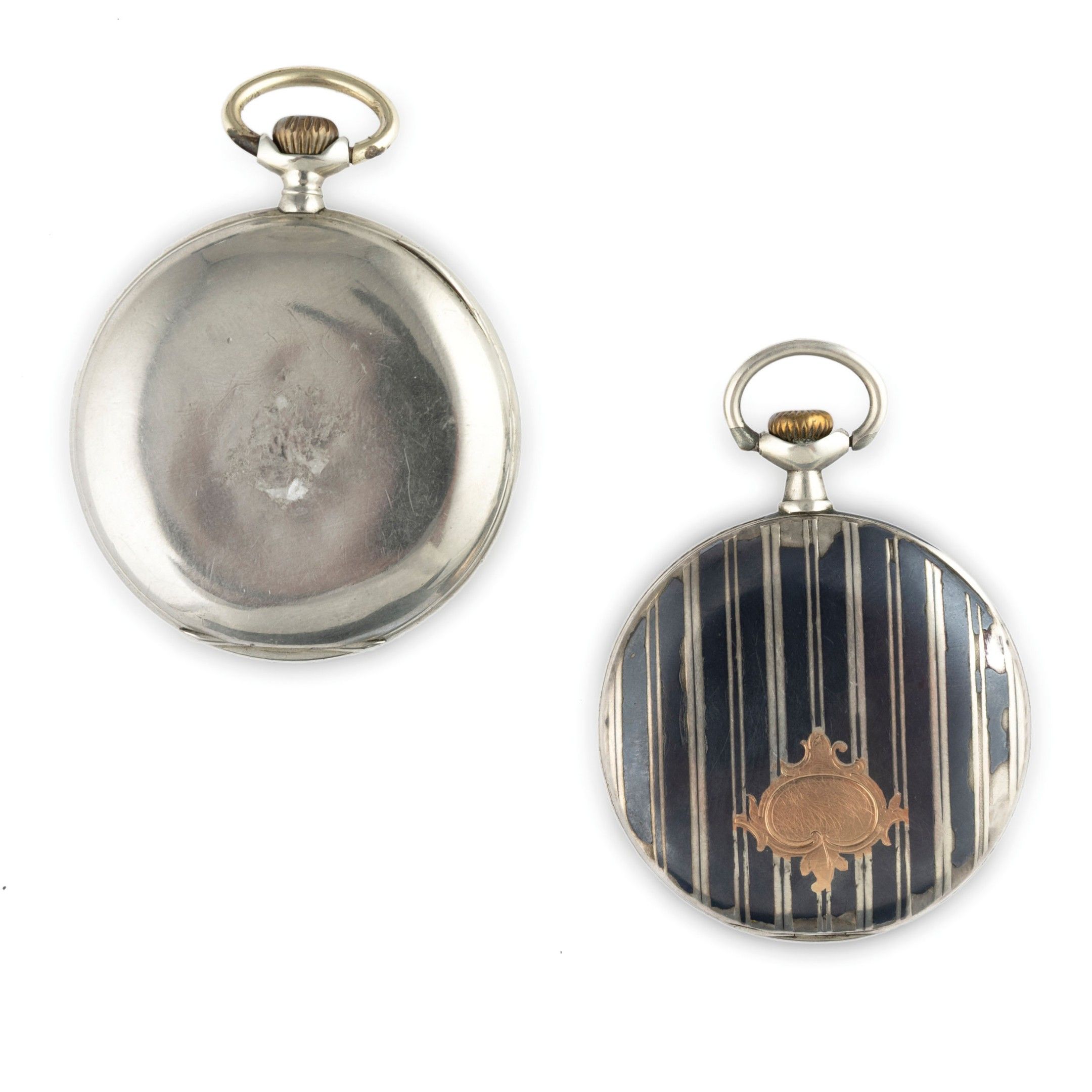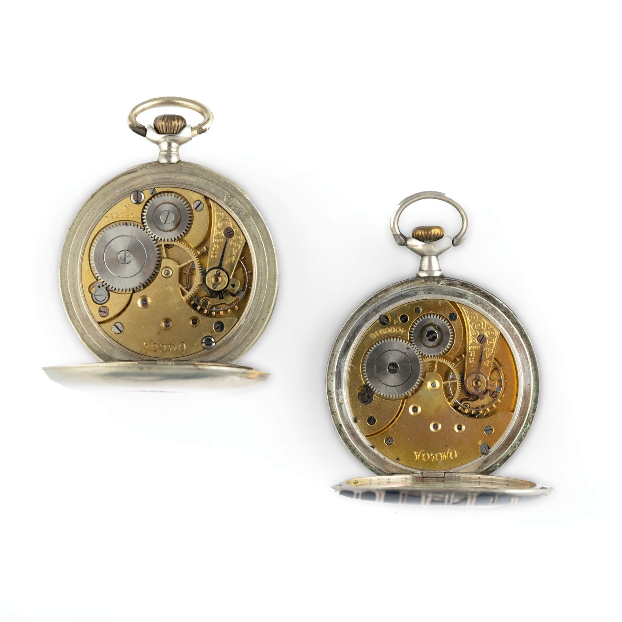 OMEGA, LOT DE DEUX MONTRES DE POCHE EN MÉTAL ET NIELLÉ, SUIS…