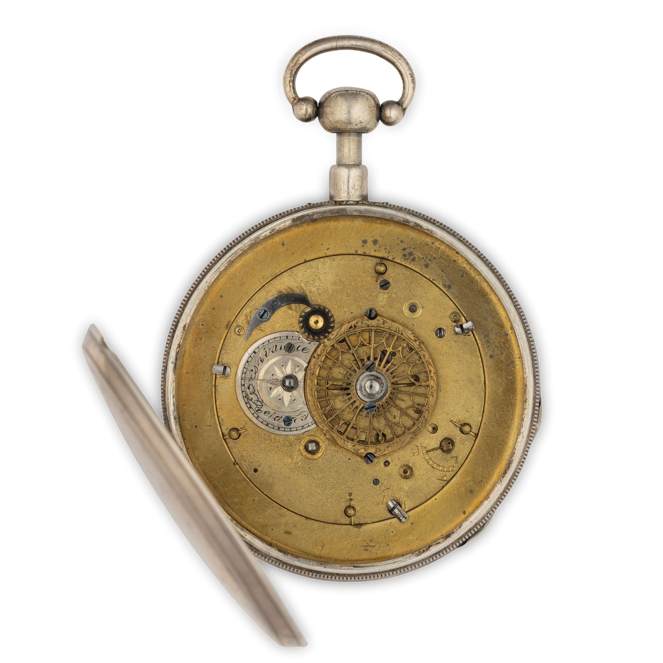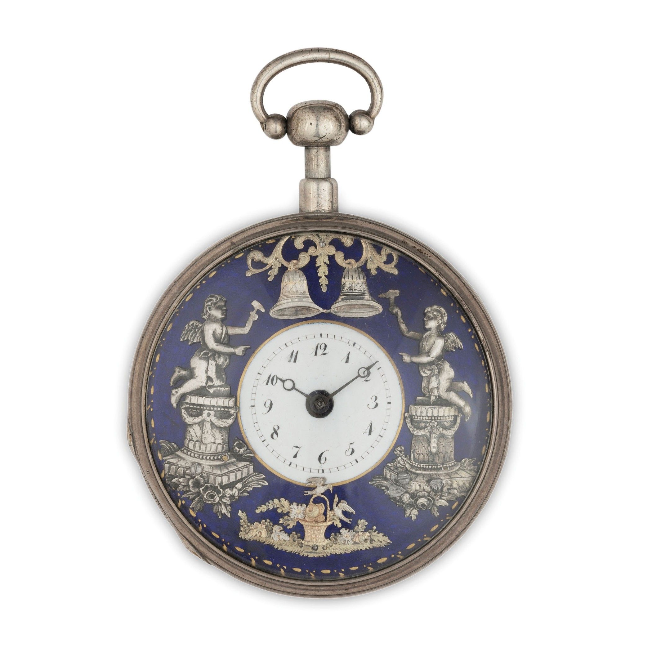 MONTRE DE POCHE JACQUEMART EN ARGENT À VERGE AVEC AUTOMATES, AVEC RÉPÉTITION DES QUARTS, SUISSE VERS 1810
