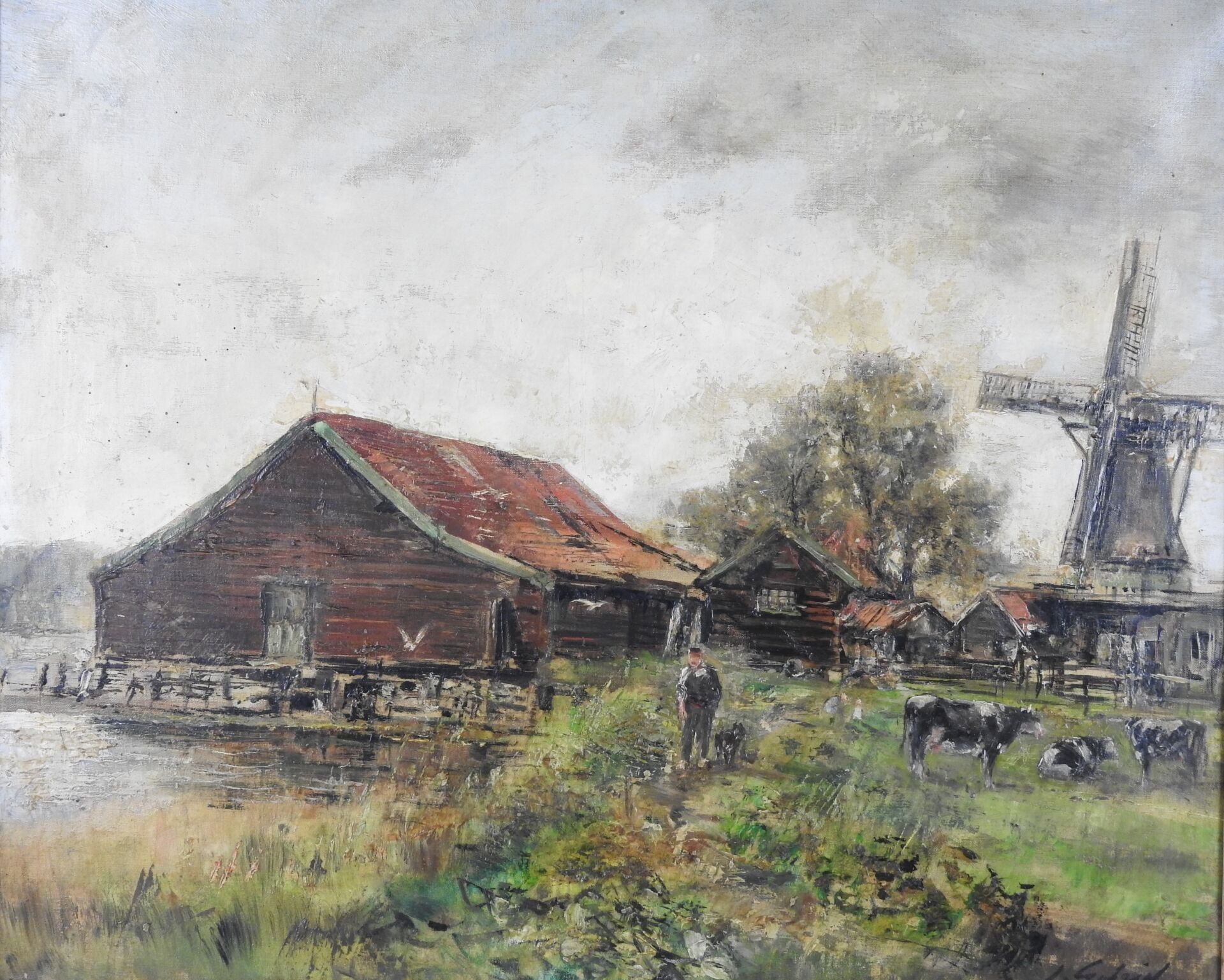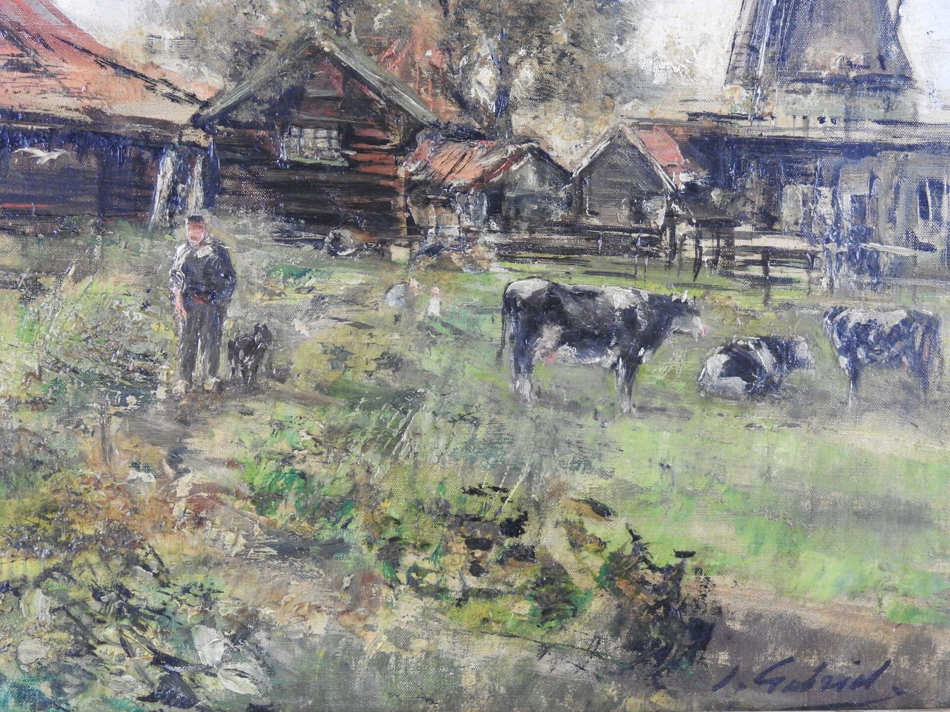 Jean Justin GABRIEL (1837 - 1923) : Paysage au moulin. Huile sur toile. Signé en bas à droite. 55 x 65 cm.