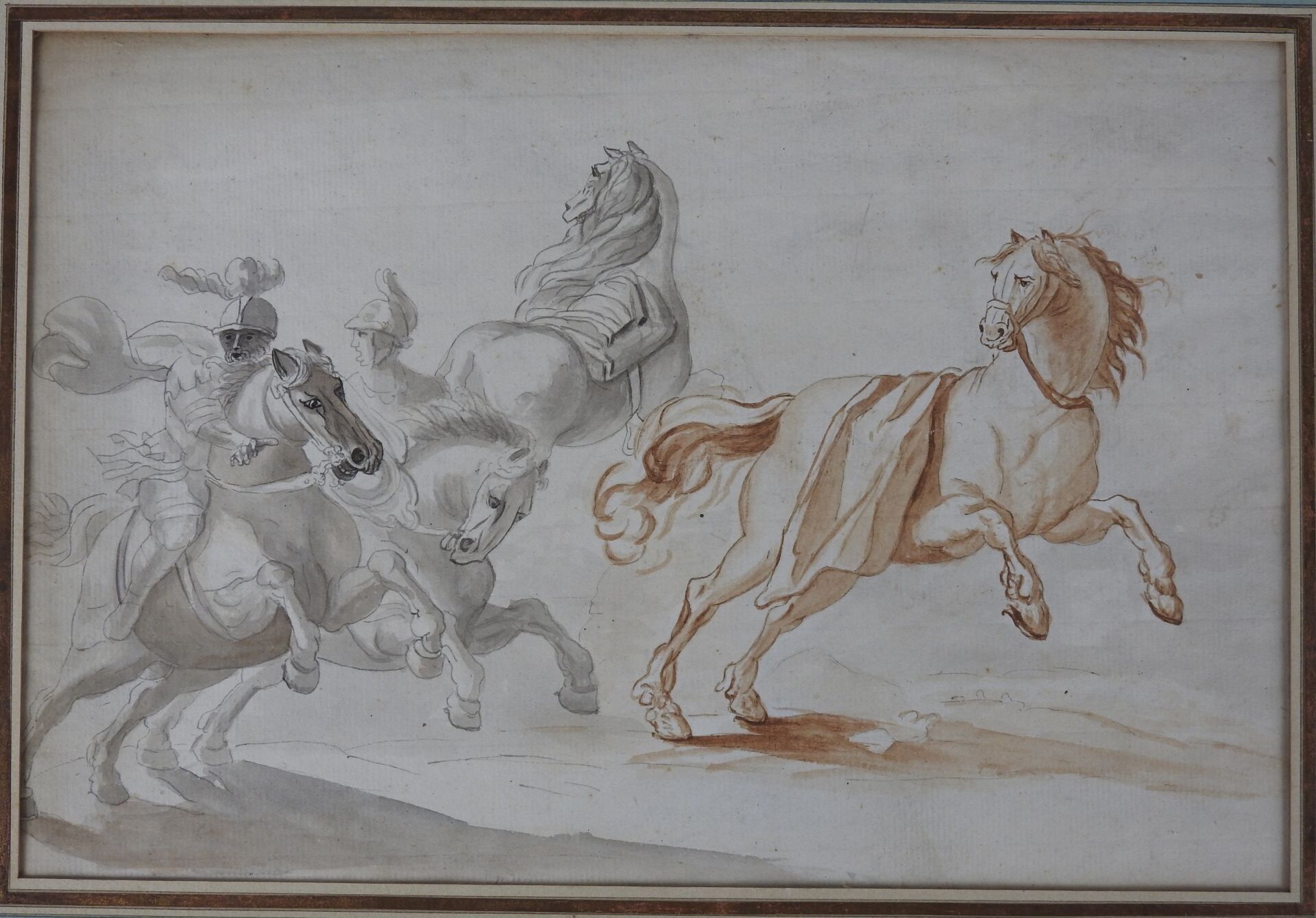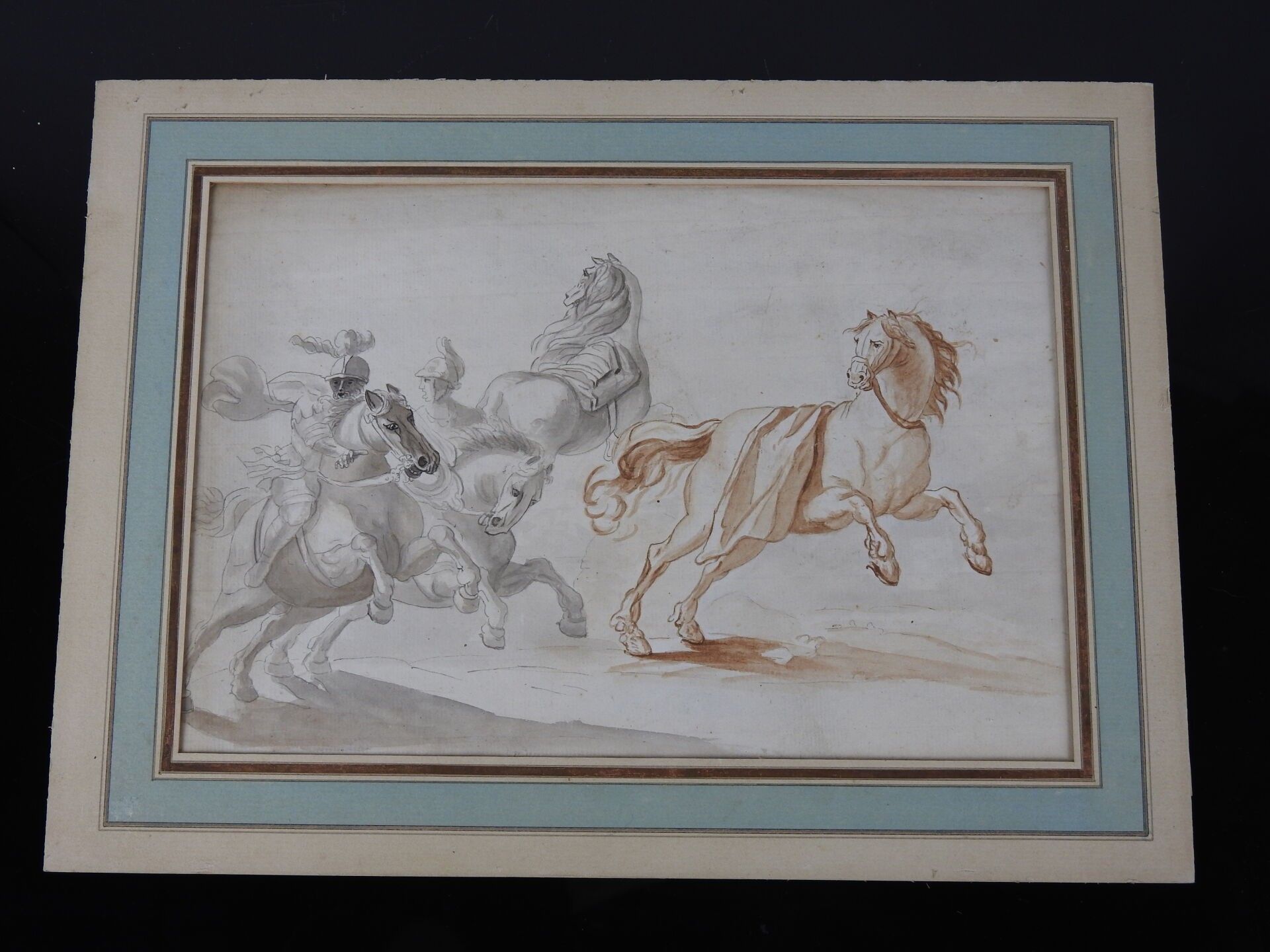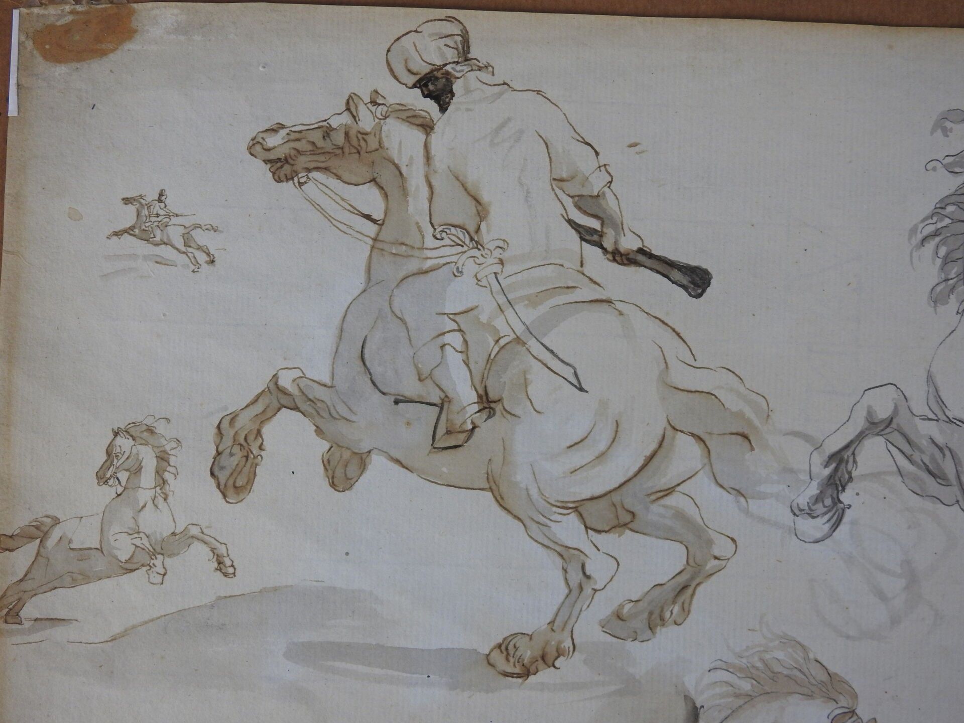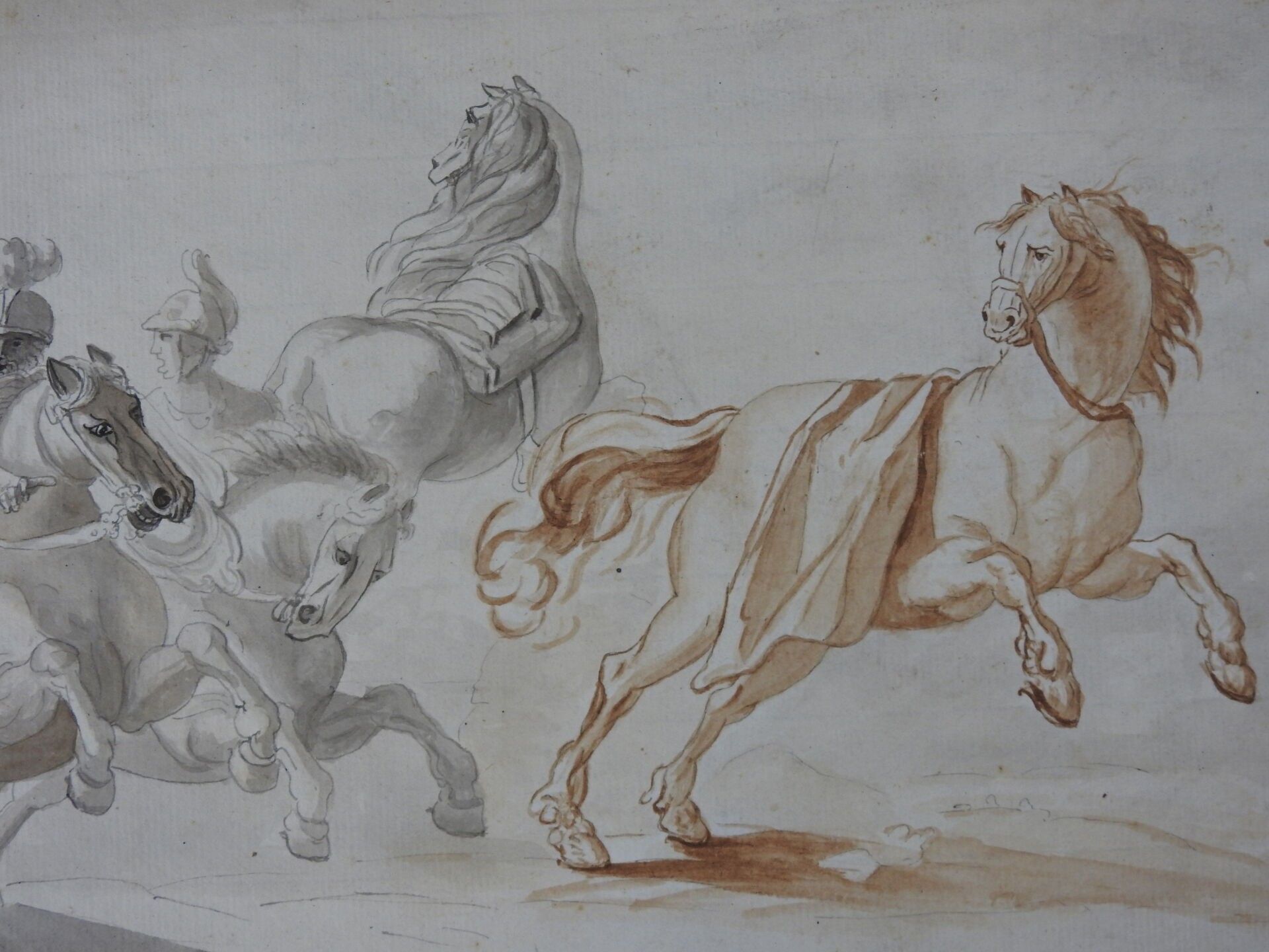 École FRANCAISE du XVIIIème siècle : Étude de cavaliers et c…