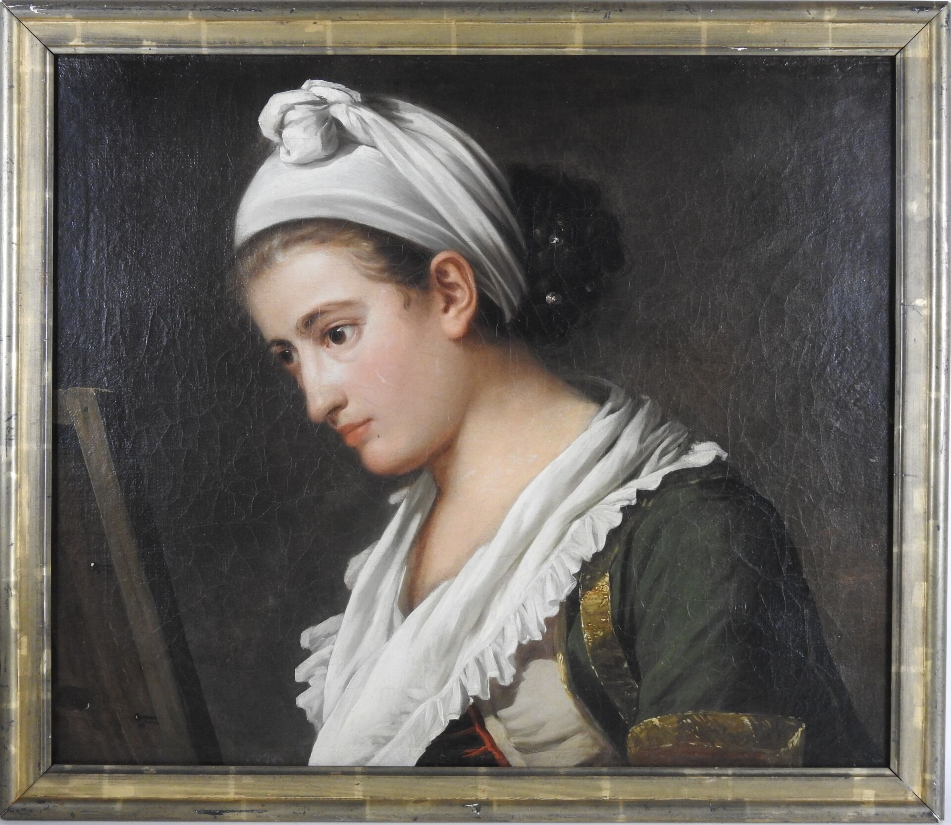 École FRANCAISE vers 1770 Femme regardant un tableau Toile, …