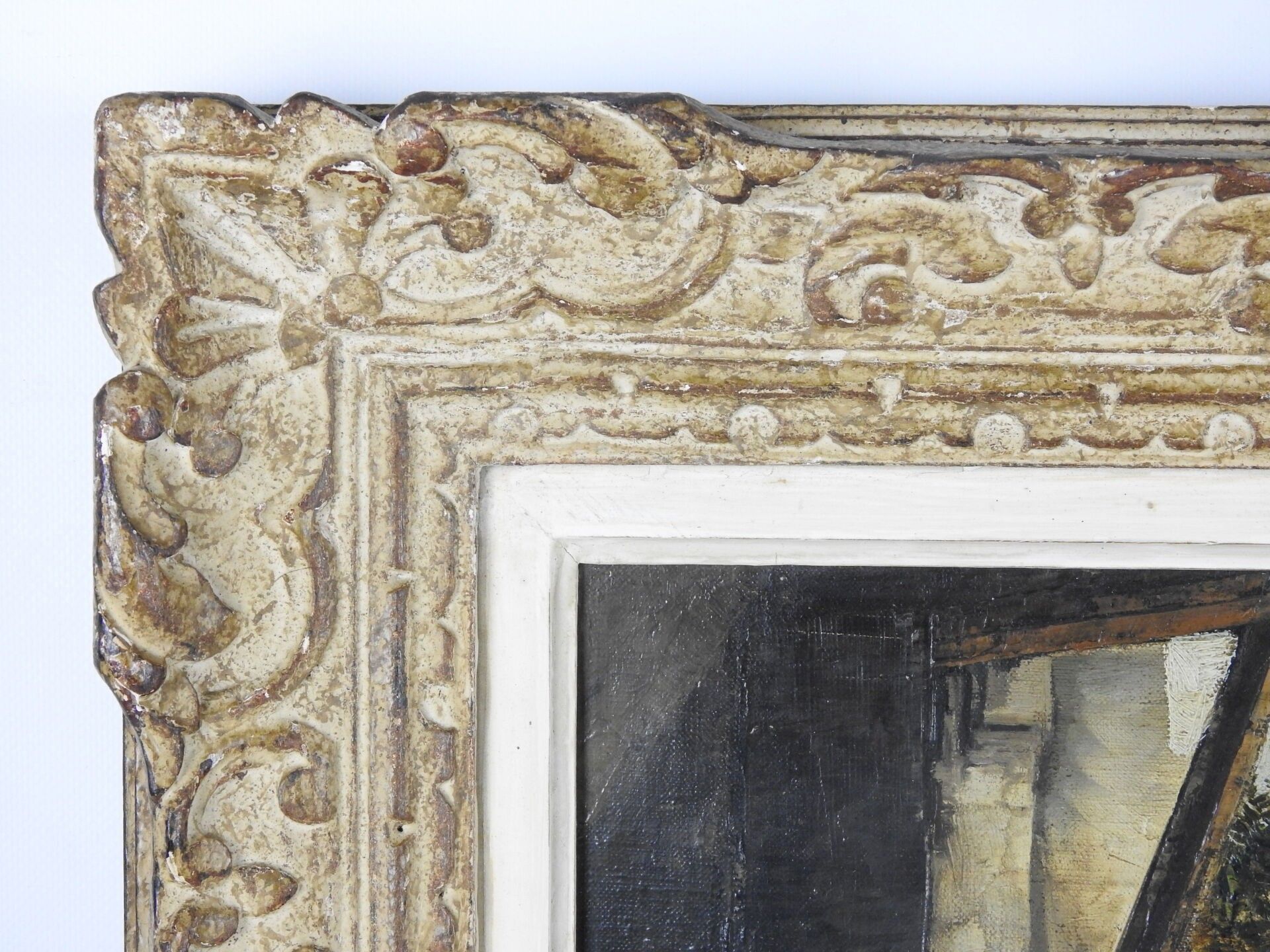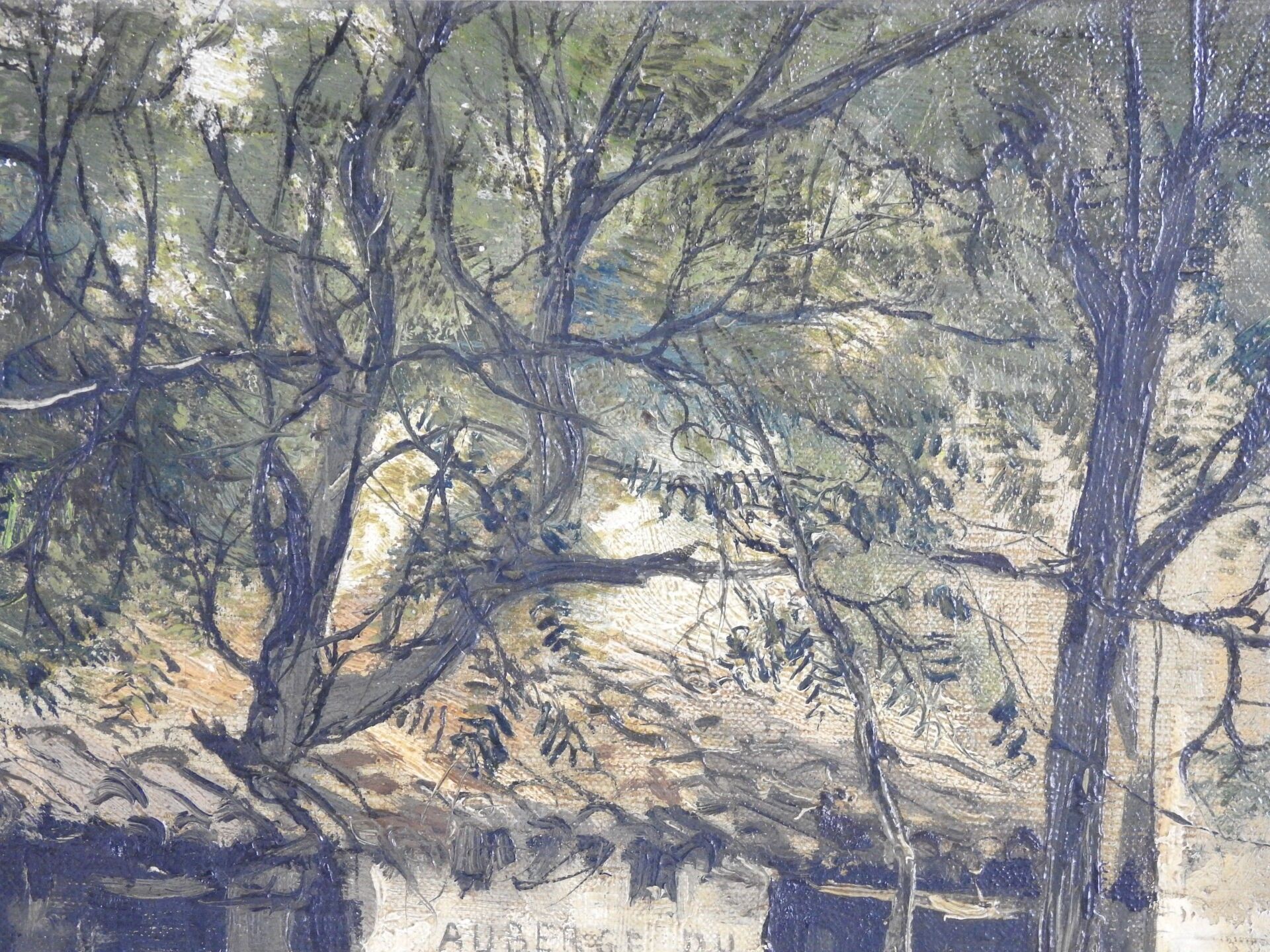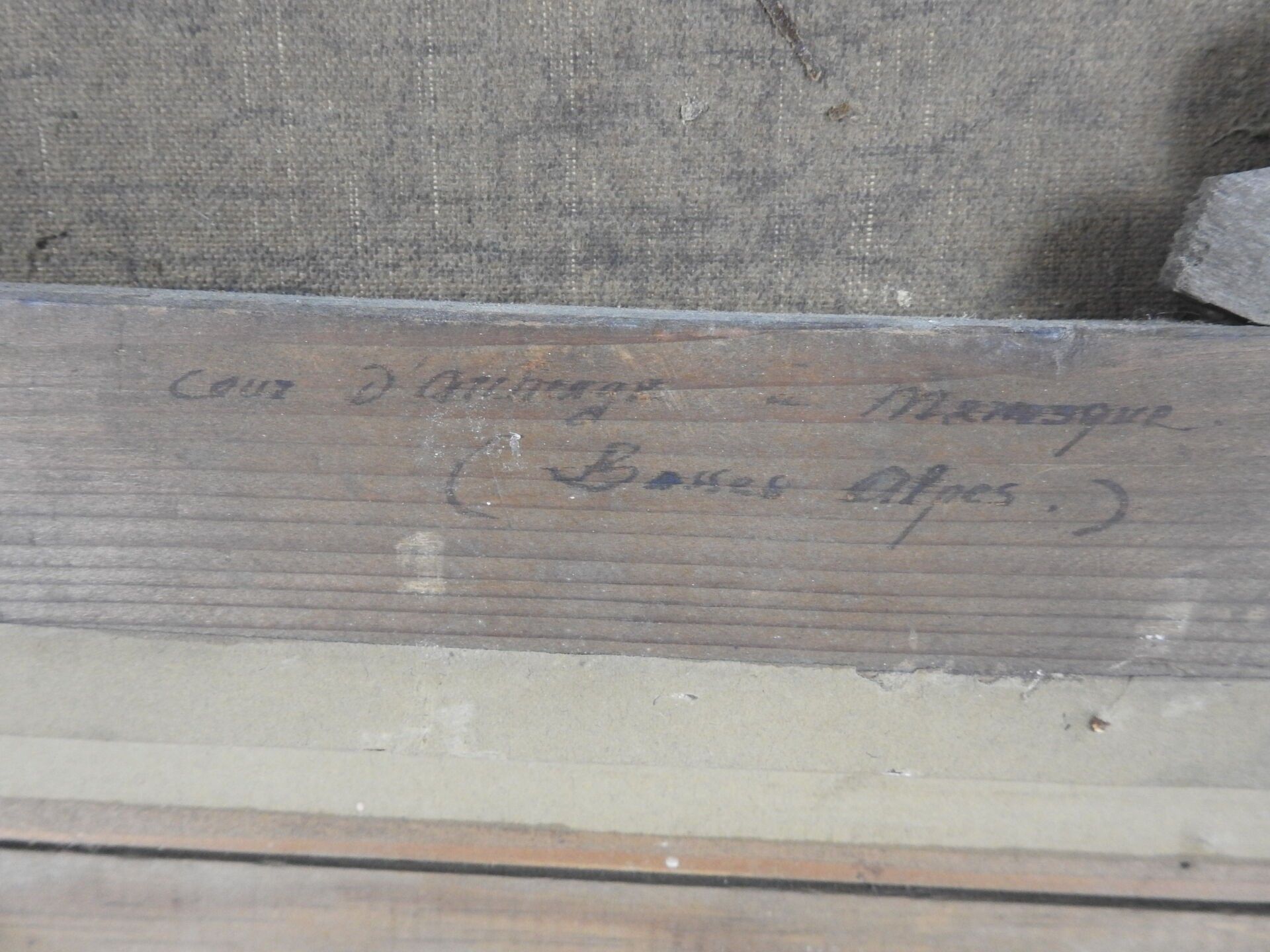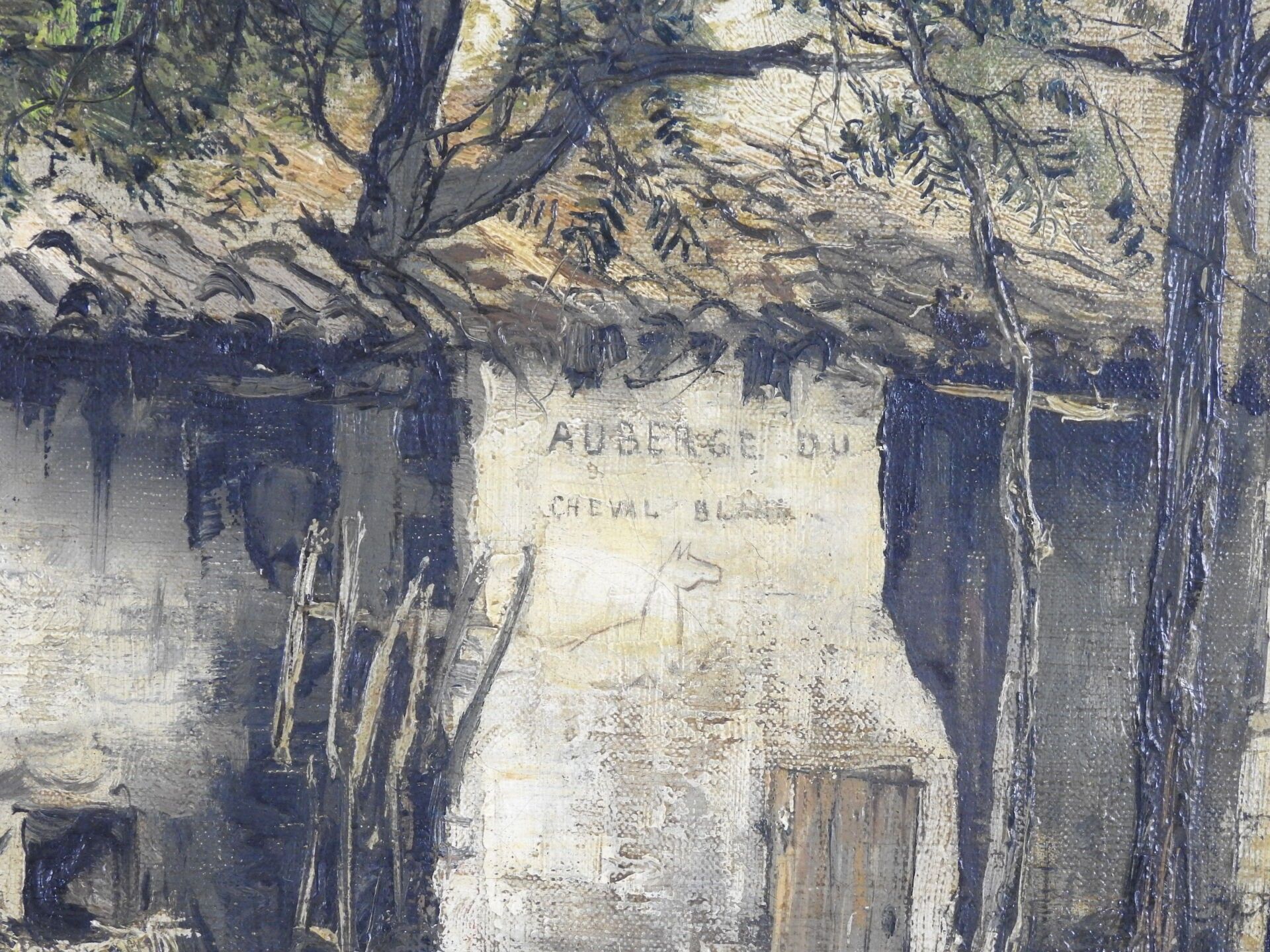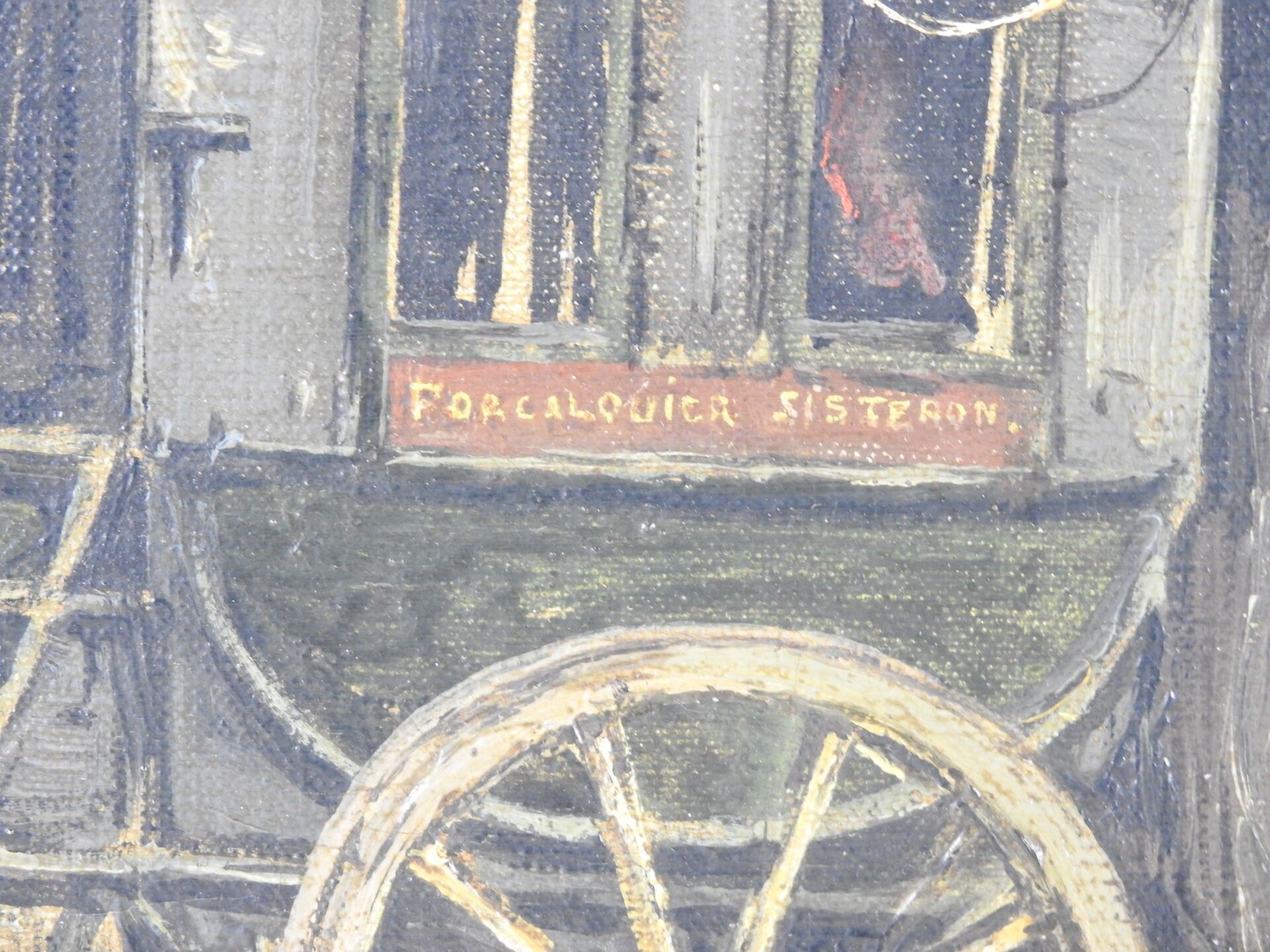 Jean Justin GABRIEL (1837 - 1923) : Cour de l'Auberge du cheval blanc à Manosque (Haute-Alpes). Huile sur toile. Signé en bas à gauche, titré au dos. 38 x 54 cm.
