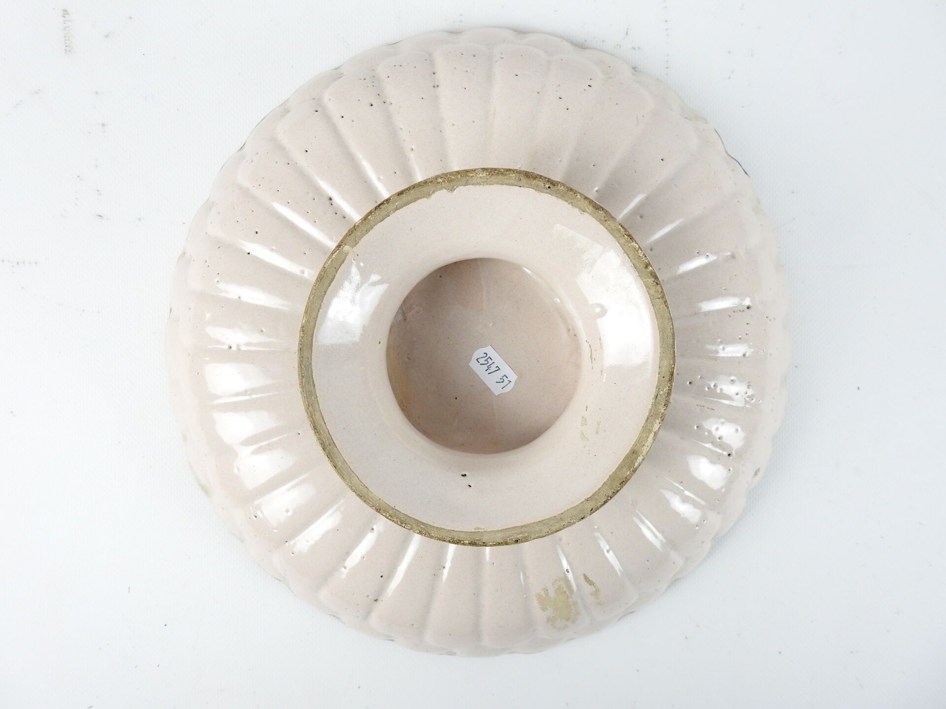 GRANDE COUPE sur piédouche à bords godronnés en majolique da…