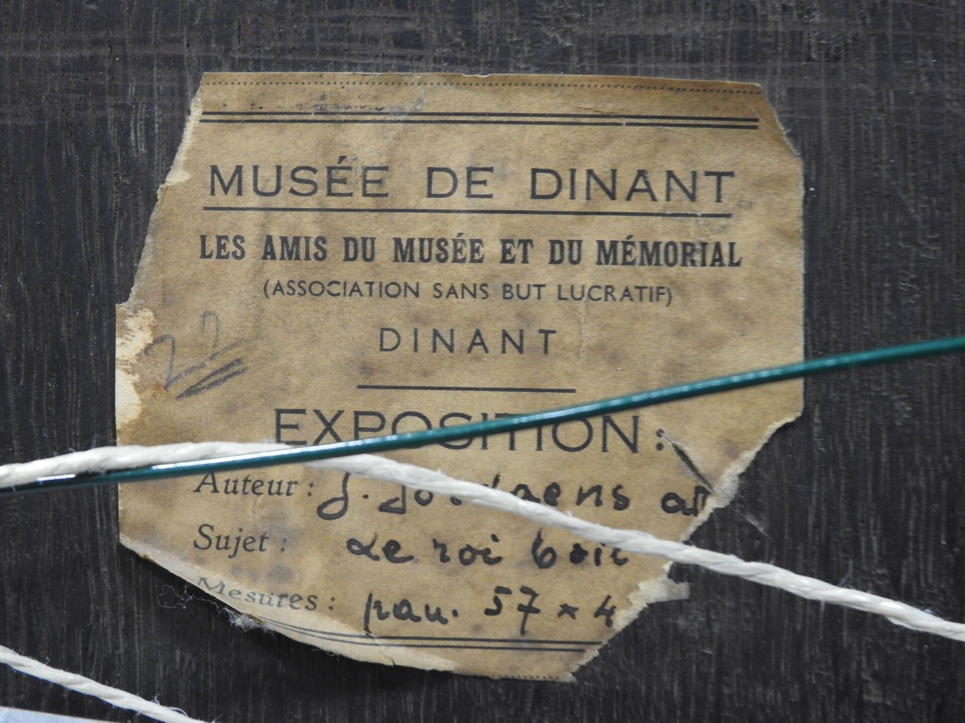 Au dos étiquette ancienne d'une exposition au musée des Beaux Arts de Dinant