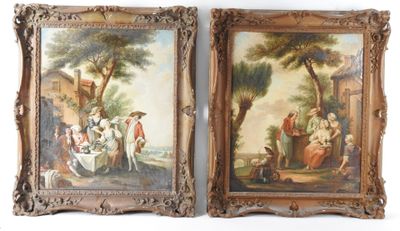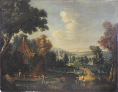 École FLAMANDE du XVIIIème siècle: Paysage animée de personn…