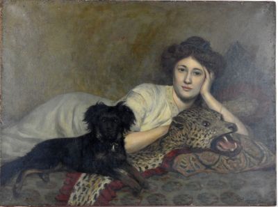 Henri PASQUIER (XIX - XXe): Femme sur une peau de léopard. H…
