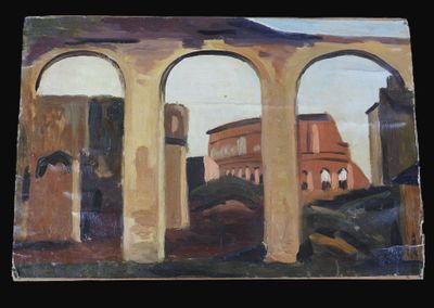 Vue de Rome, le Colisée depuis les arches de la basilique de…