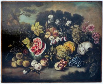 Ecole FRANCAISE du XVIIIème siècle : Nature morte à la corbe…