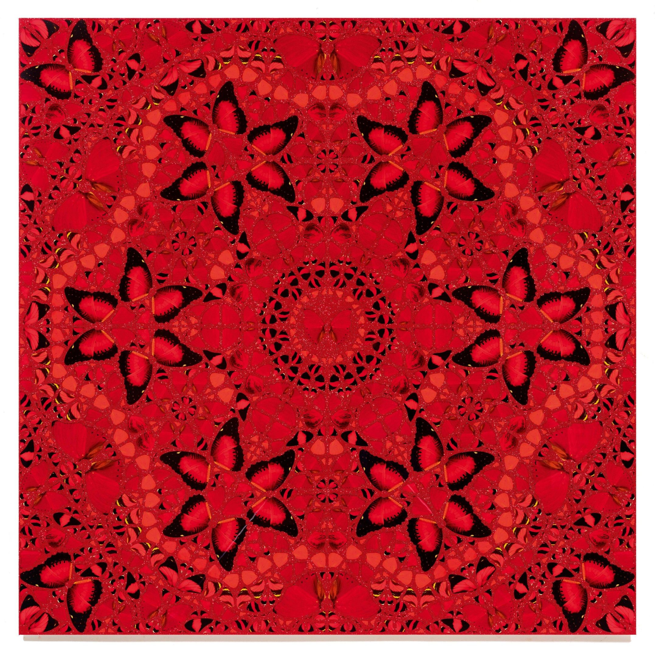Impression giclée laminée, retravaillée avec une sérigraphie à paillettes et montée sur aluminium. 1835/2853. Signé au crayon sur l'étiquette de l'éditeur au verso : Damien Hirst, et avec le cachet de l'éditeur. Dimensions 100 × 100 cm. Publié par HENI Editions, Londres (avec étiquette et cachet au verso).