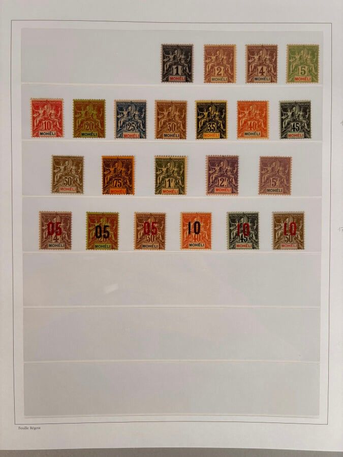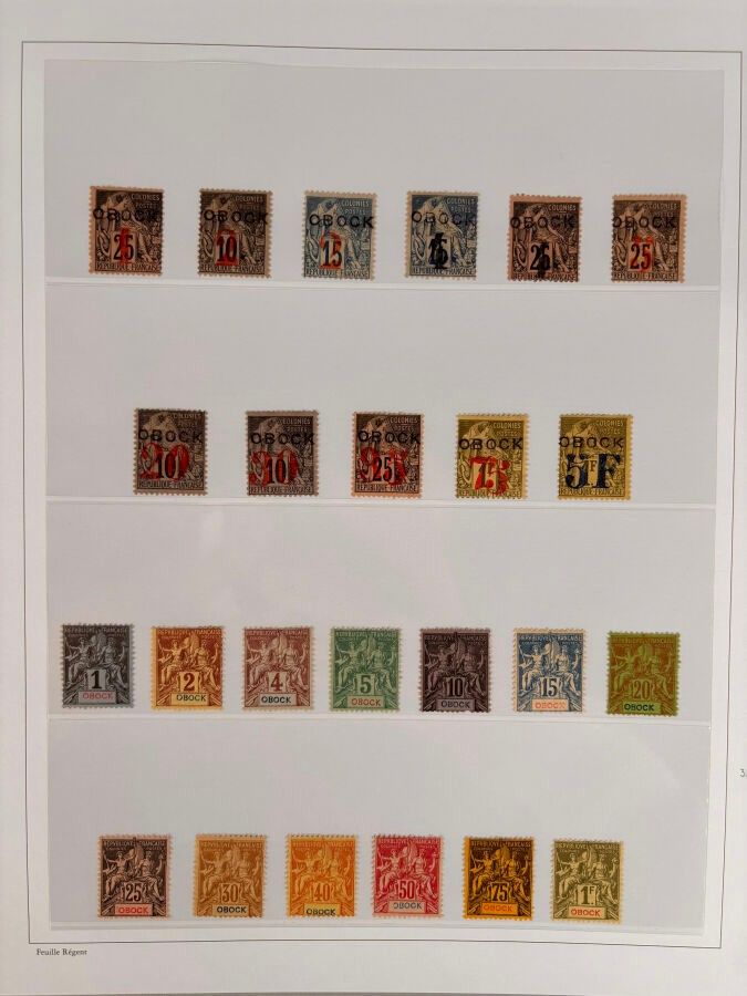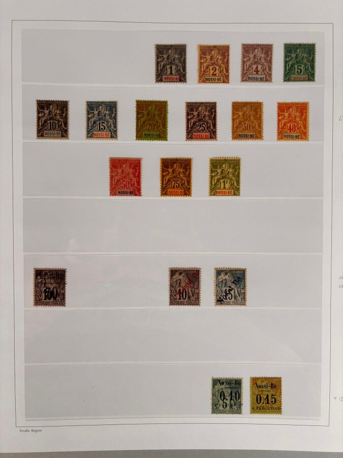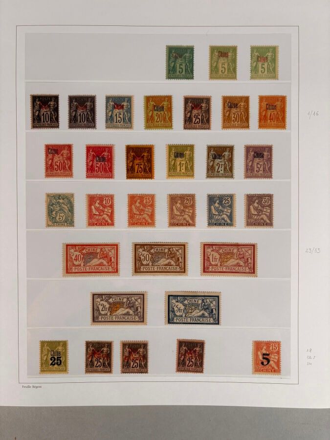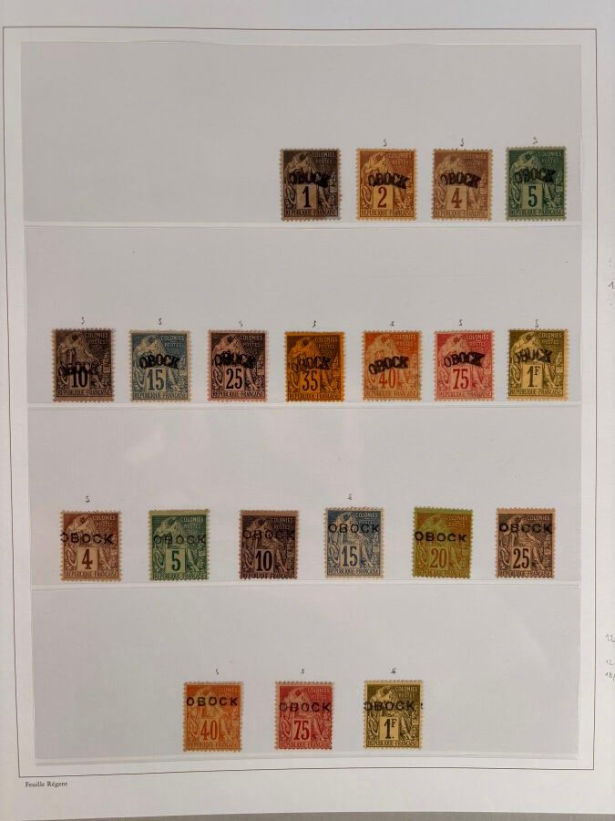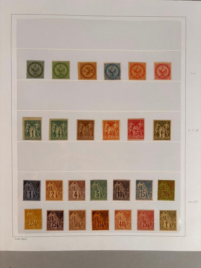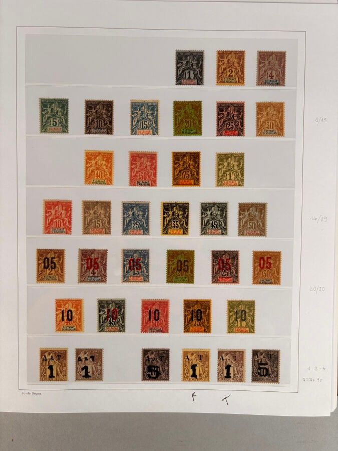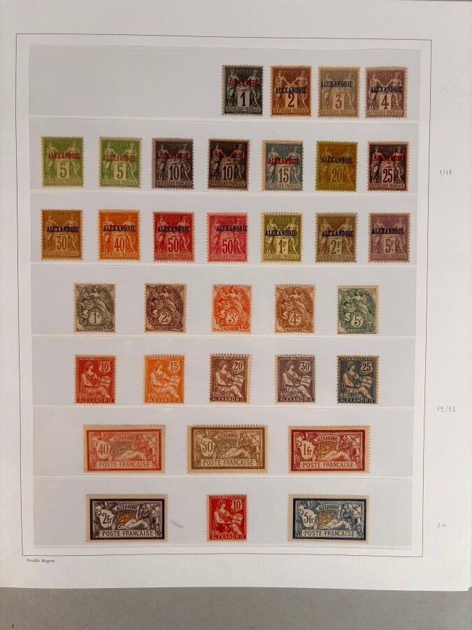 COLONIES GENERALES - ALEXANDRIE - ANJOUAN - ANAM - BENIN - CANTON - CHINE - COCHINCHINE - DIEGO SUAREZ - FEZZAN - GRANDES COMMORES - HOI HAO - HONGRIE - MEMEL - MOHELI - MONGTZEU - NOSSI-BE - OBOCQ - PACKOY - PORT SAID - SENEGAMBIE - SARRE - TAHITI - TCHONGKING - YUNNANFOU: En album YVERT, belle collection de petits pays et bureaux français à l'étranger N** et N* des fac-similés, très très forte cote.