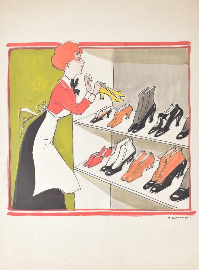 Edouard SAUNIER (1885-1918), "L'étalage, chaussures pour fem…