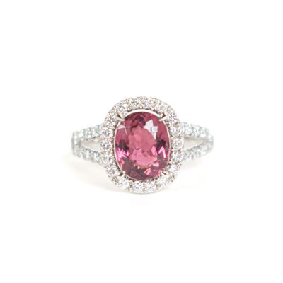 Bague en or blanc 18K (750/oo) sertie d'un rubis taille oval…