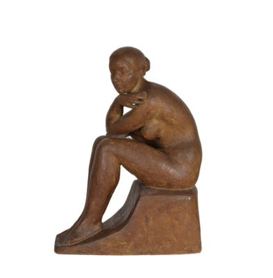 Louis DEJEAN (1872-1953), "Nue de femme assise", terre cuite…