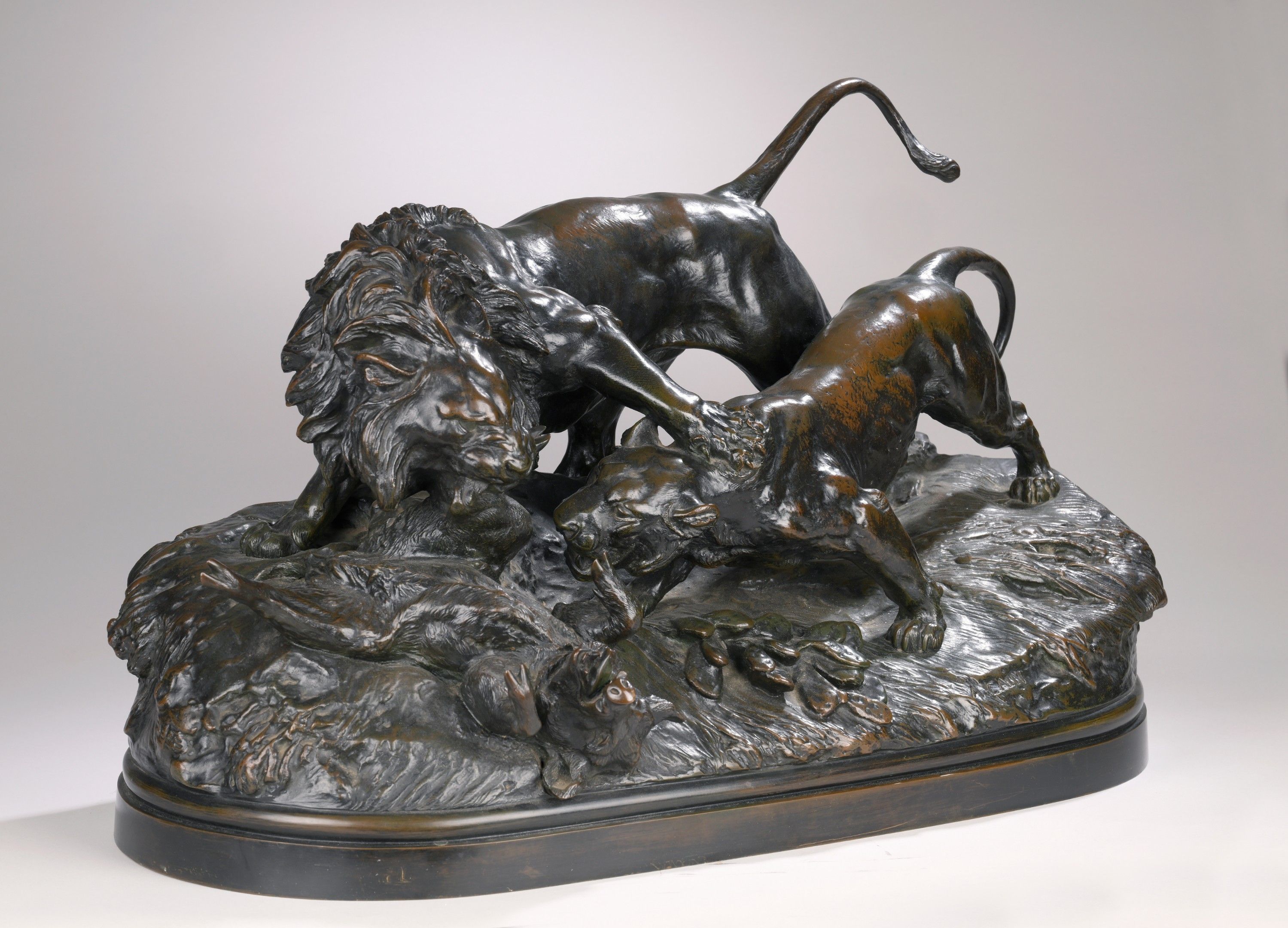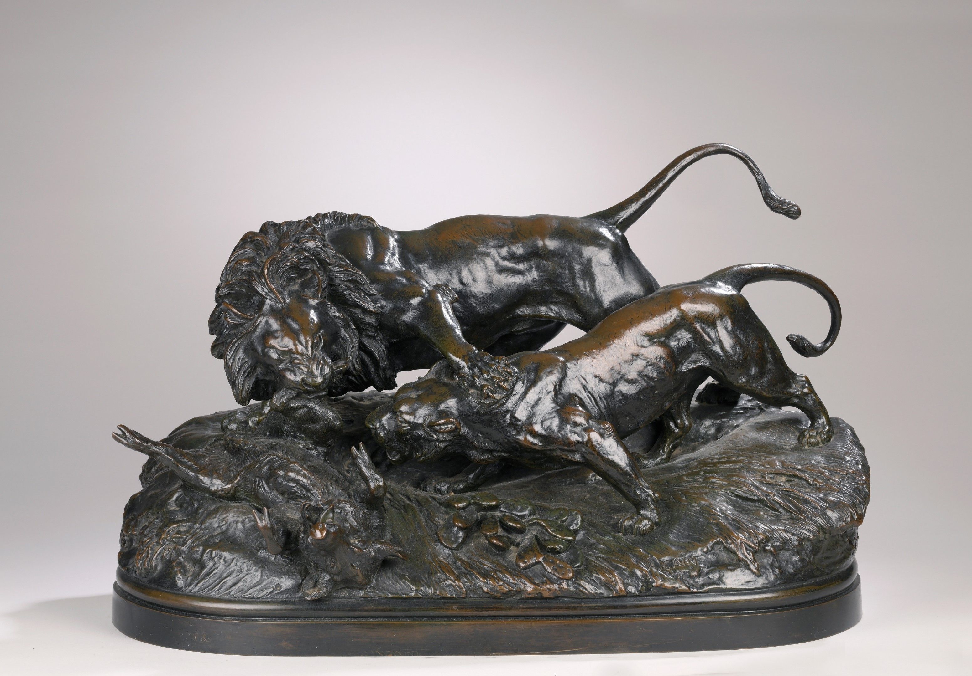 Auguste Cain (1821-1894) Lion et lionne se disputant un sang…