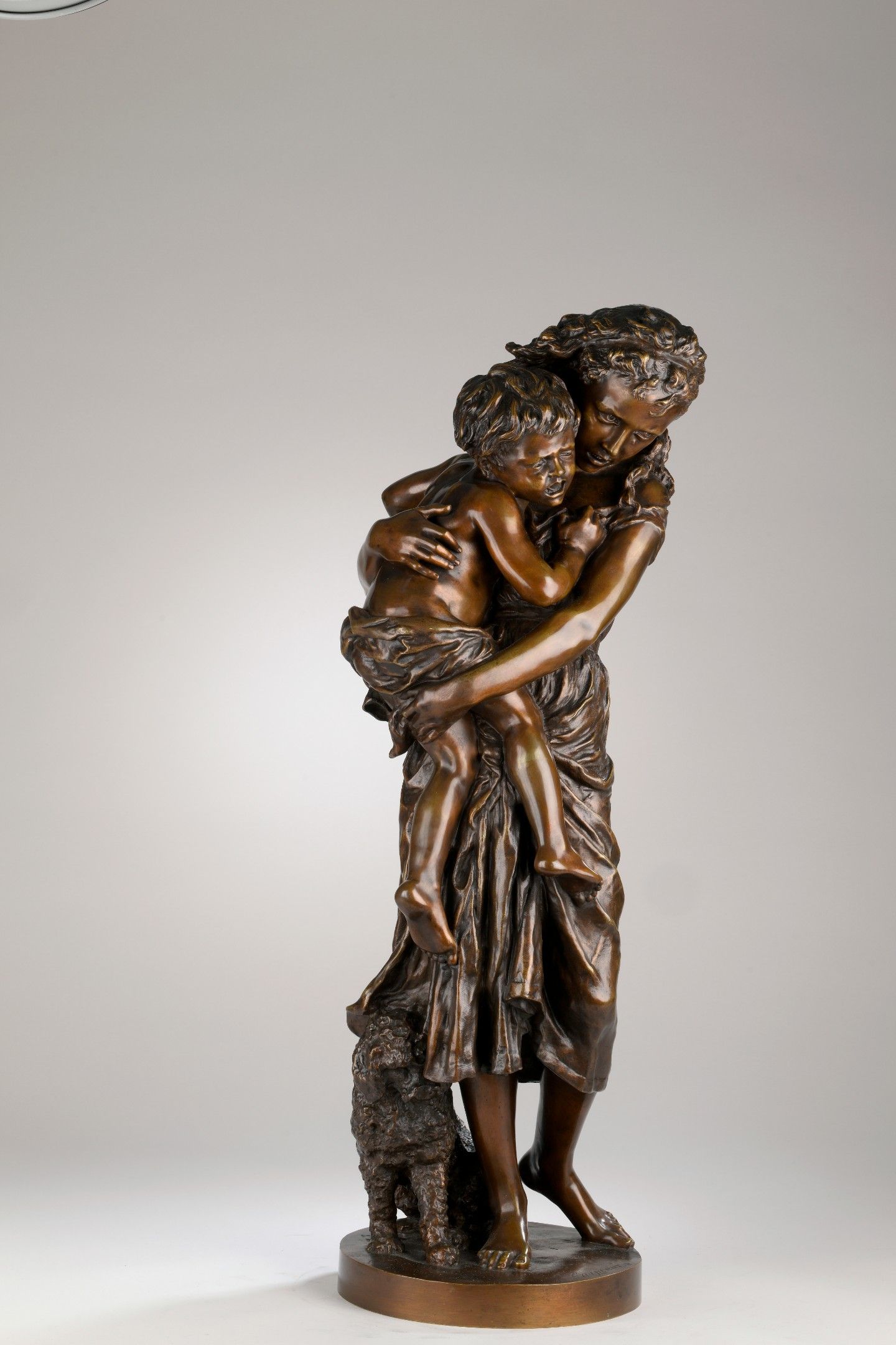 Figurant un jeune garçon éploré dans les bras de sa sœur, un chien blotti à leurs pieds, ce groupe aurait été inspiré à Carpeaux par deux jeunes orphelins qu’il aurait recueilli dans son atelier pendant le Siège de Paris en 1870. Trois ans plus tard, il reprend ce sujet en peinture lors de son exil en Angleterre.