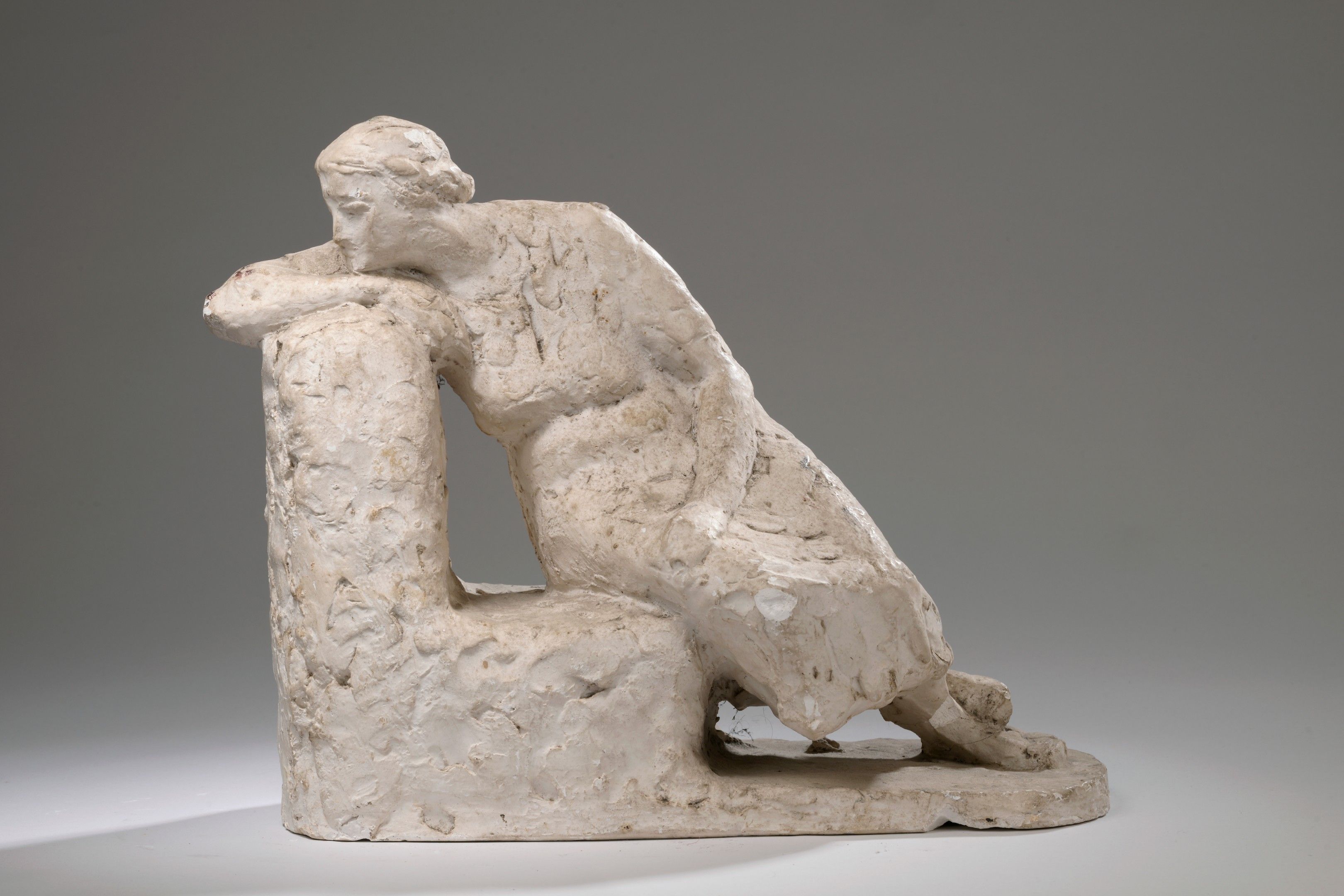Cette femme assise est une étude pour une commande de l’État passée en 1938. Simon Goldberg n’a que 25 ans. Fraîchement sorti de l’École des Arts appliqués, où Robert Wlérick (1882-1944) lui a enseigné le modelage, et Charles Malfray (1887-1940) le dessin. Ses camarades d’atelier sont Jean Carton (1911-1988), Raymond Corbin (1907-2002) et Raymond Martin (1910-1992). Des amitiés se nouent et il intègre une famille d’artistes.