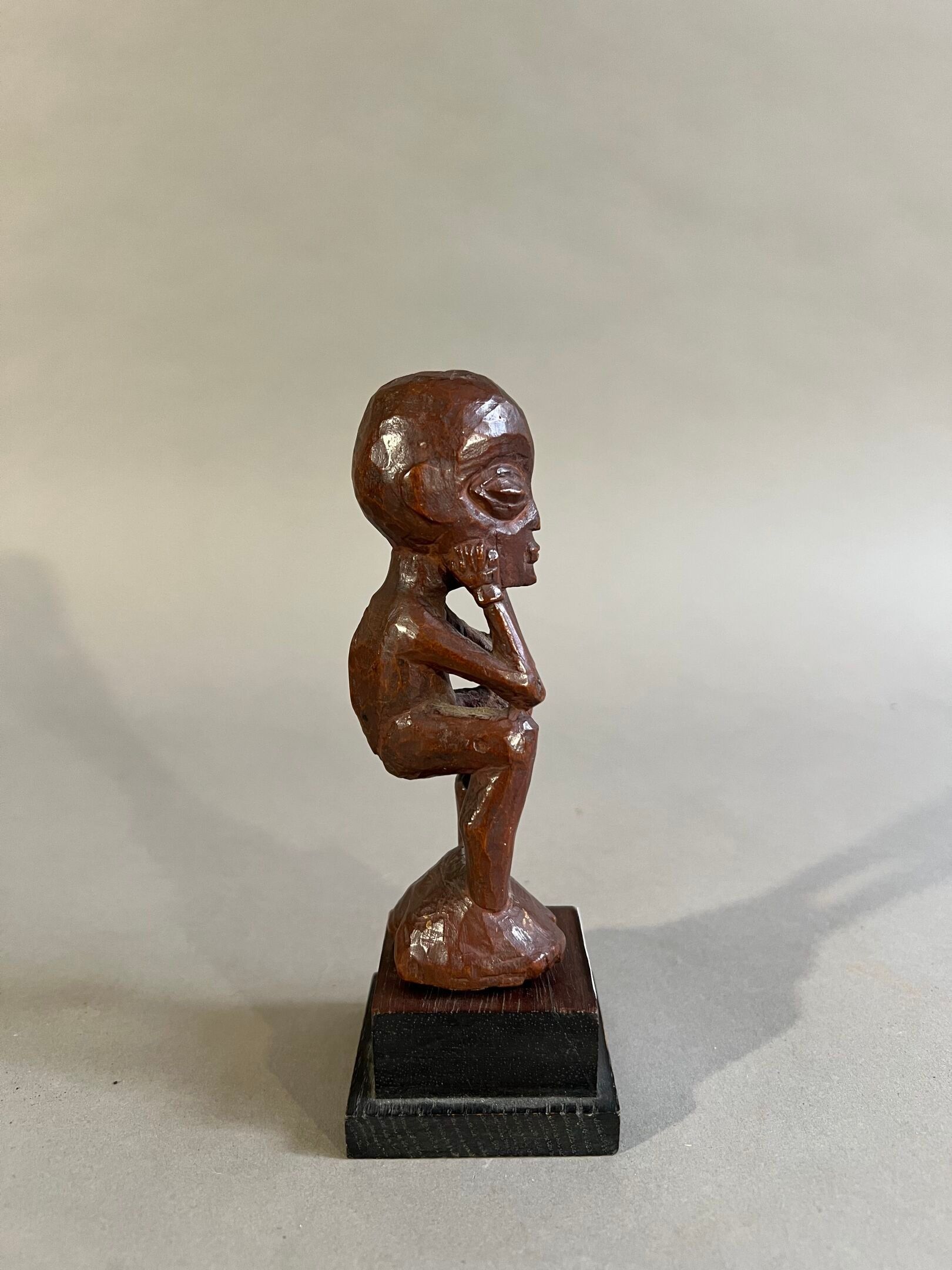 Statuette Bena Lulua, RDC Bois, patine brun rouge H. 12,5 cm…
