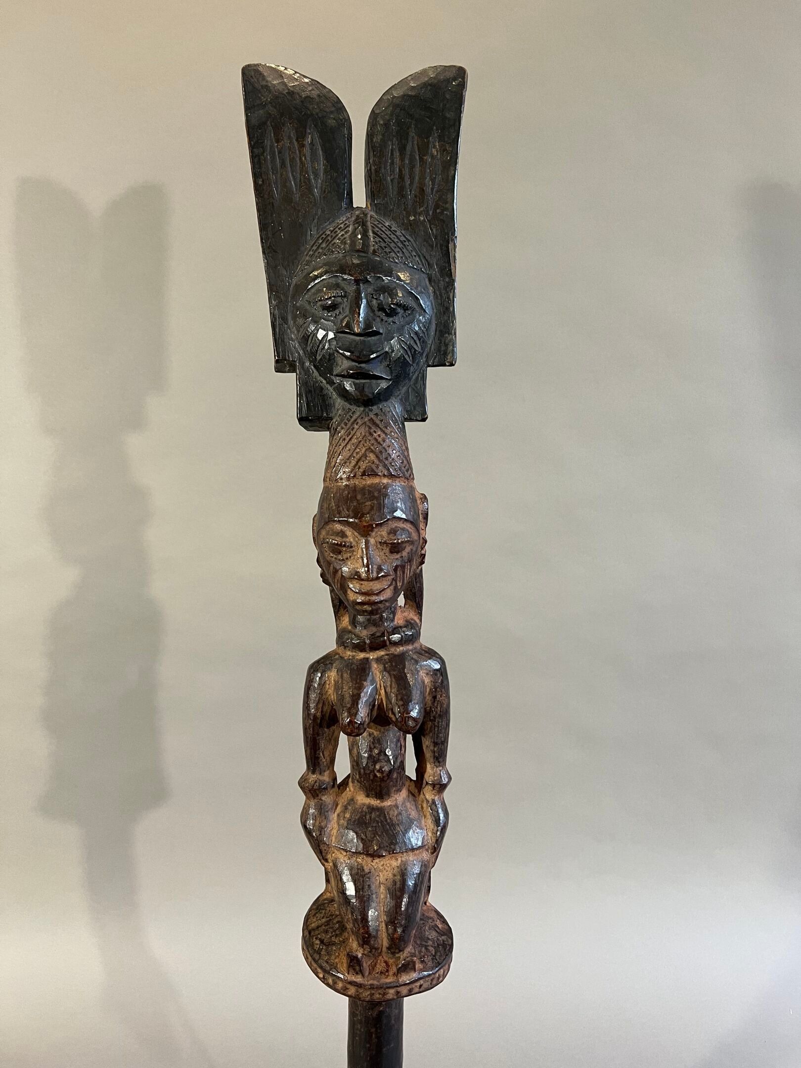 Sceptre Shango, Nigeria Bois, patine brune, rouge et noire H…