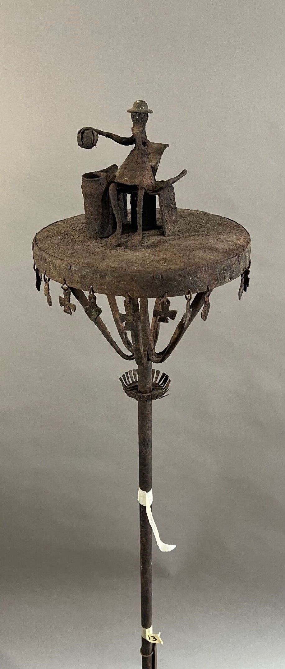 Autel d'ancêtre, le plateau en partie supérieure soutenu par une tige reposant sur le mât central.