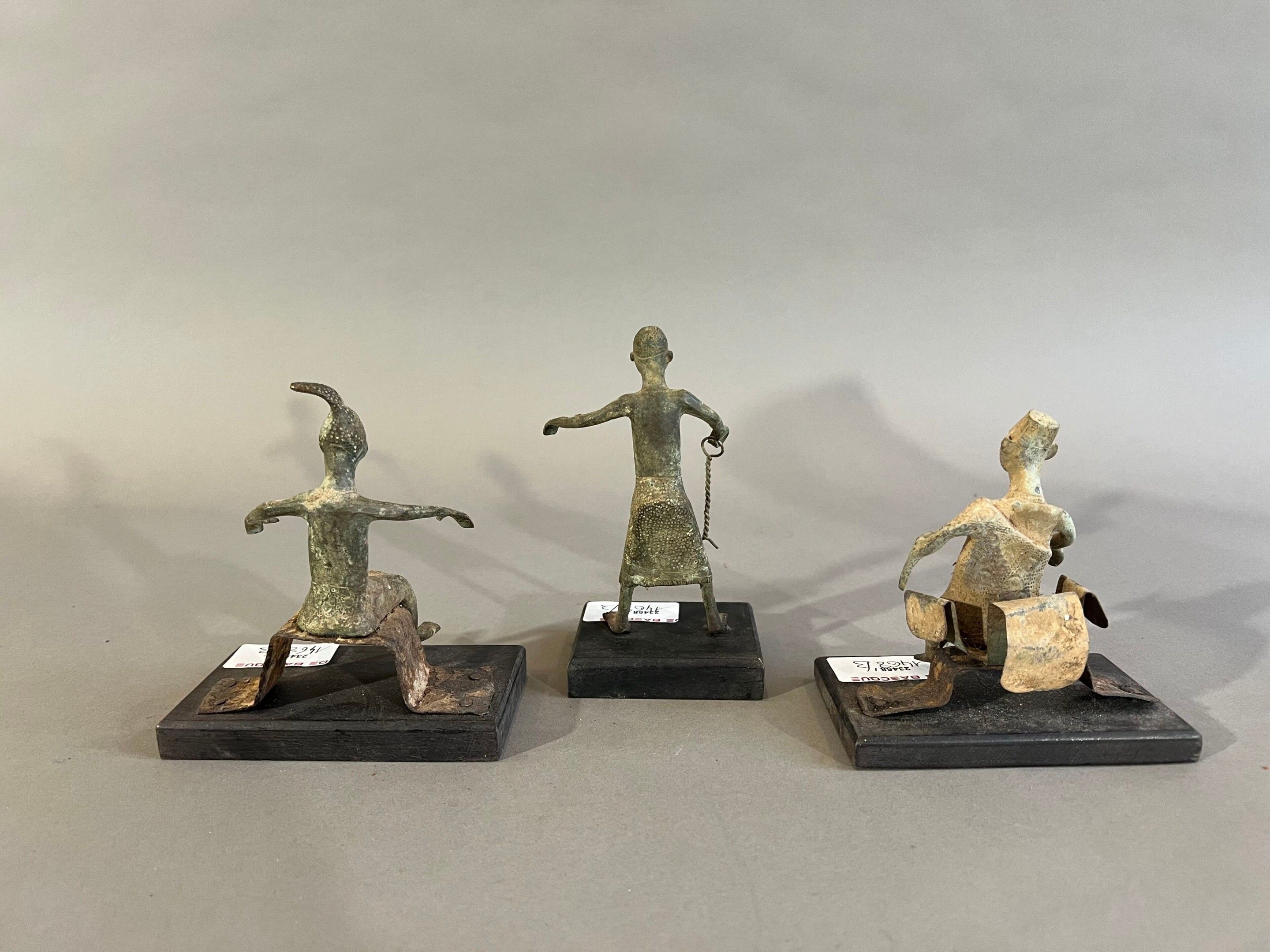 Bronze, fer (pour les tabourets), patine d'oxydation