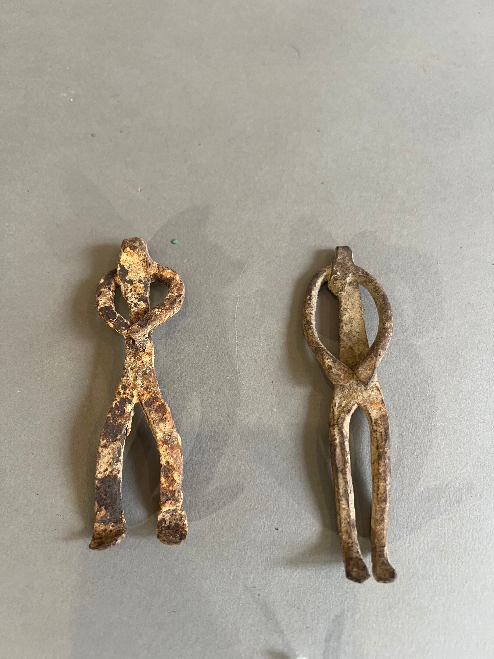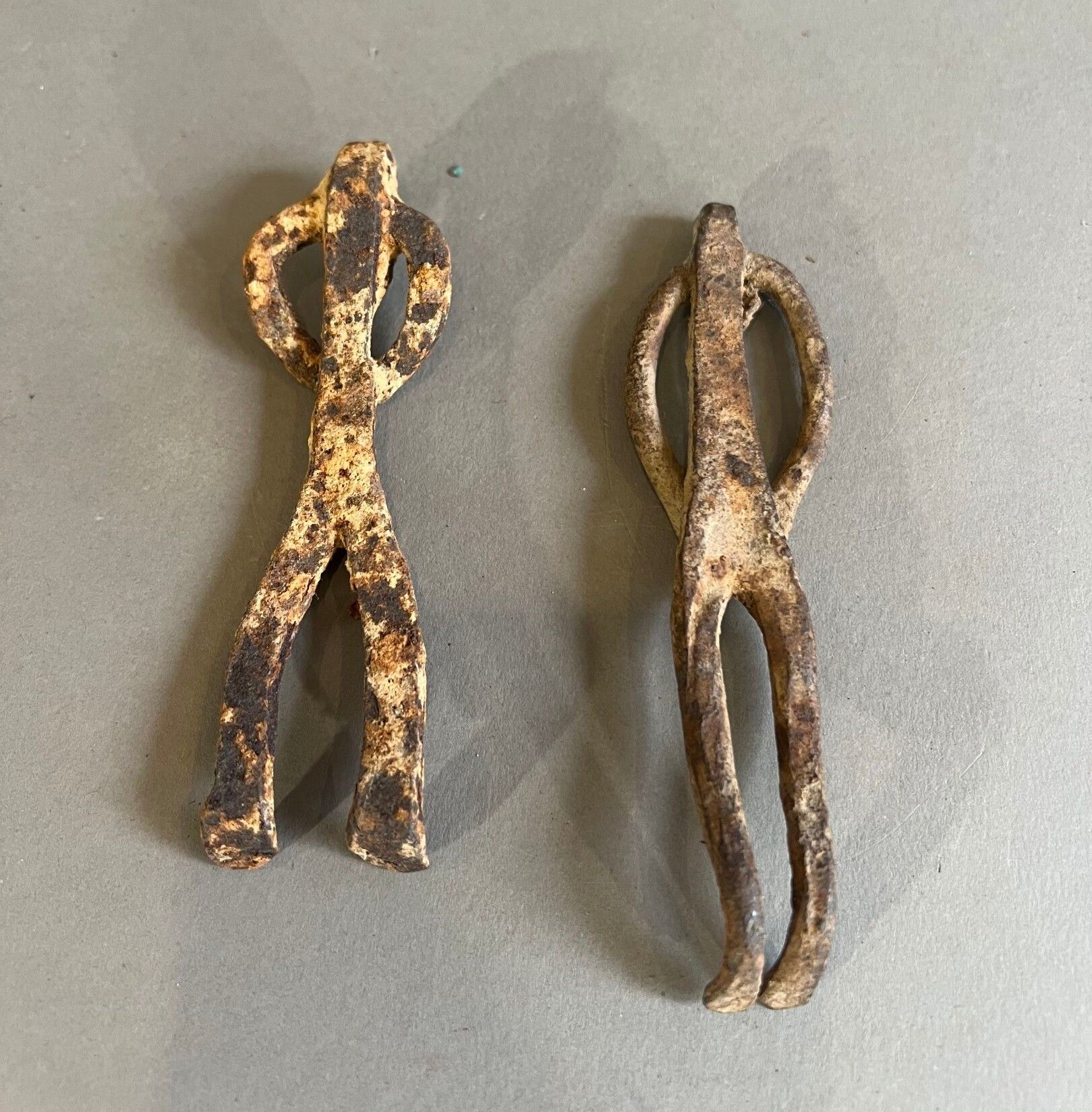 Deux personnages Lobi, Burkina-Faso Fer oxydé H. 10 cm et 10…