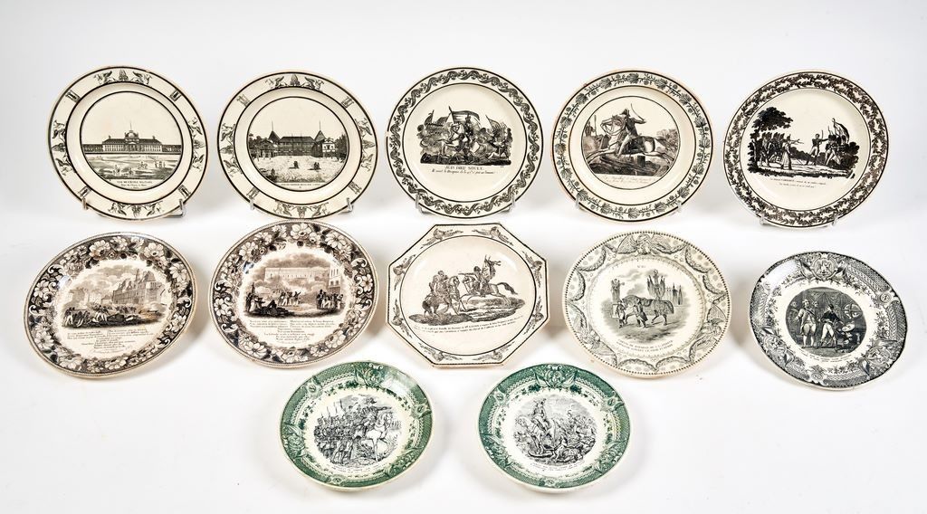 Divers Lot de 12 assiettes patriotiques, dépareillées, principalement sur l’épopée napoléonienne.
