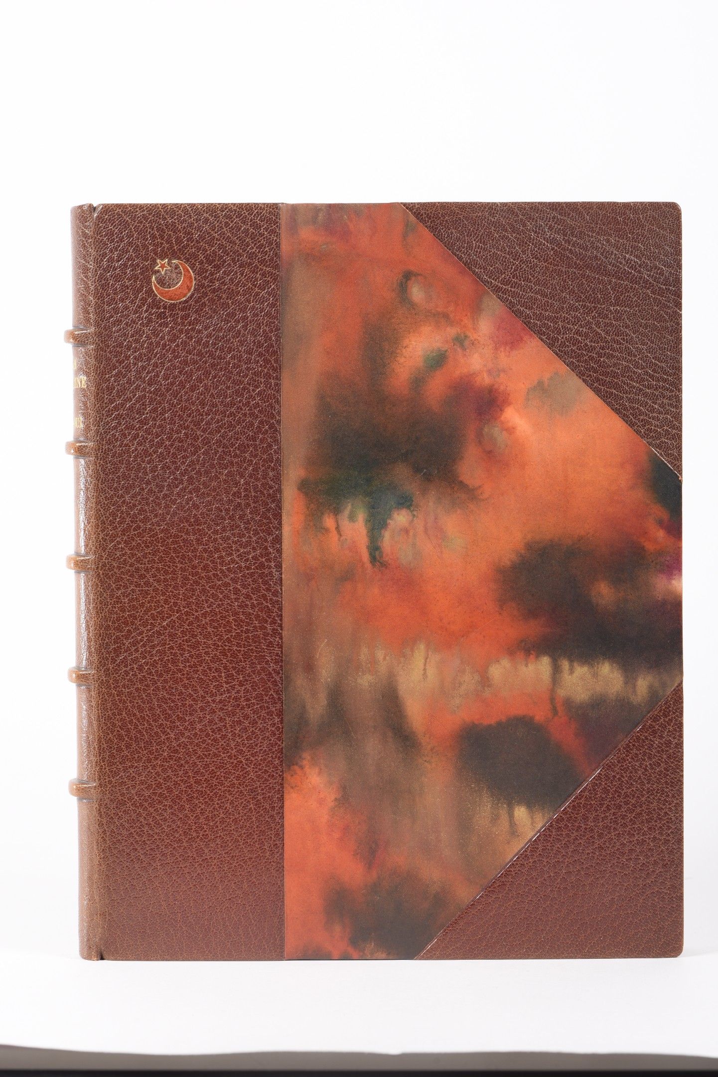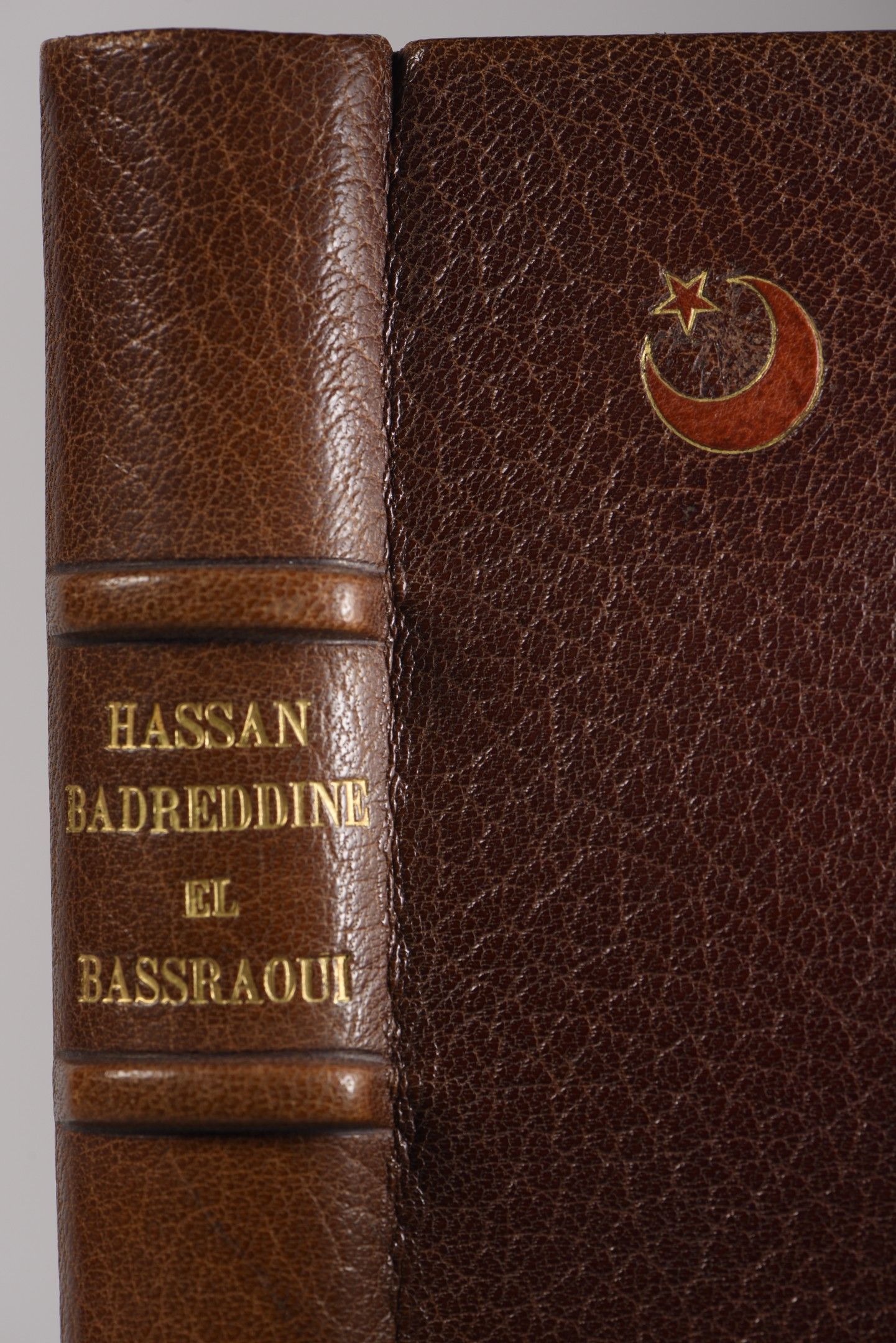 Très bon exemplaire de cet ouvrage rare et recherché, ici revêtu d’une reliure signée Contier en demi-maroquin brun à coins, couvertures illustrées d’origine conservées, joli croissant et étoile mosaïqués au premier plat, tête dorée, dos très légèrement insolé.