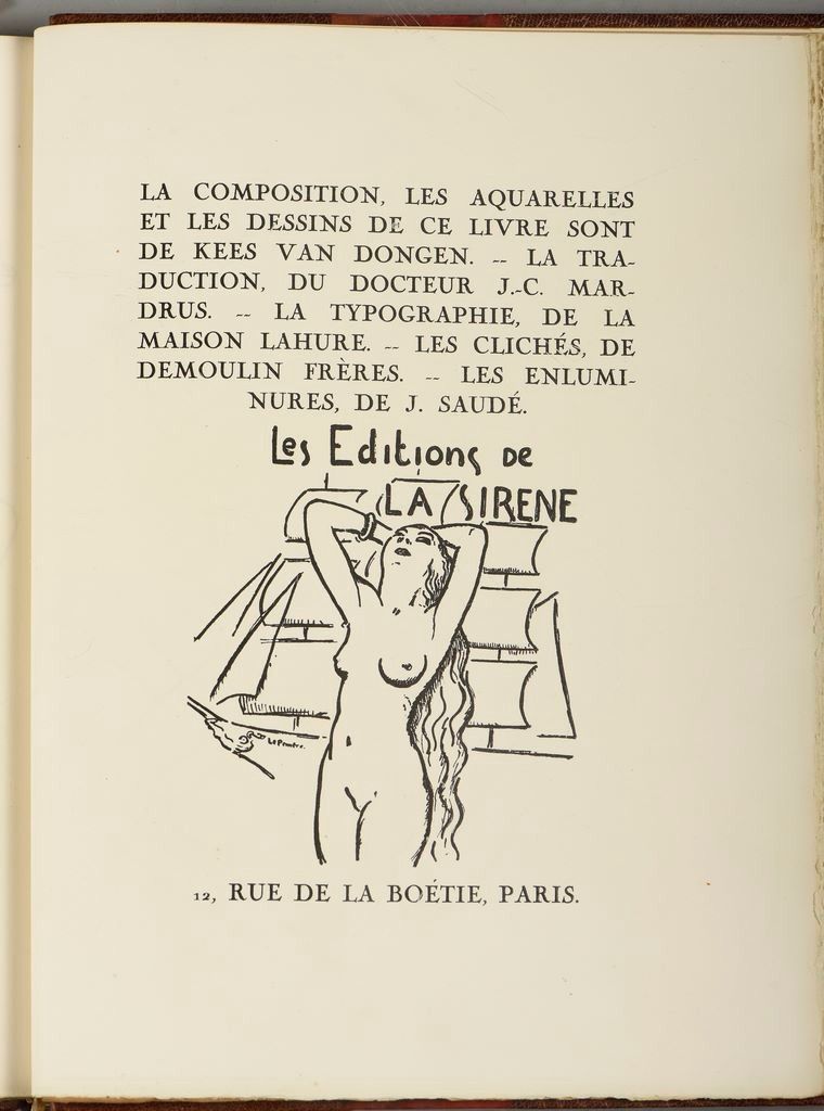Paris, Éditions de la Sirène, s.d. [1918]. — Superbe édition illustrée de 117 compositions de Kees VAN DONGEN, dont 110 en noir et 7 aquarelles à pleine page reproduites au pochoir par J. Saudé.