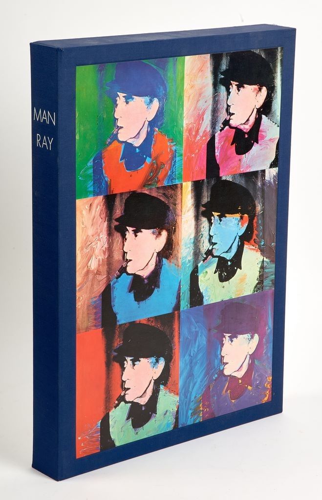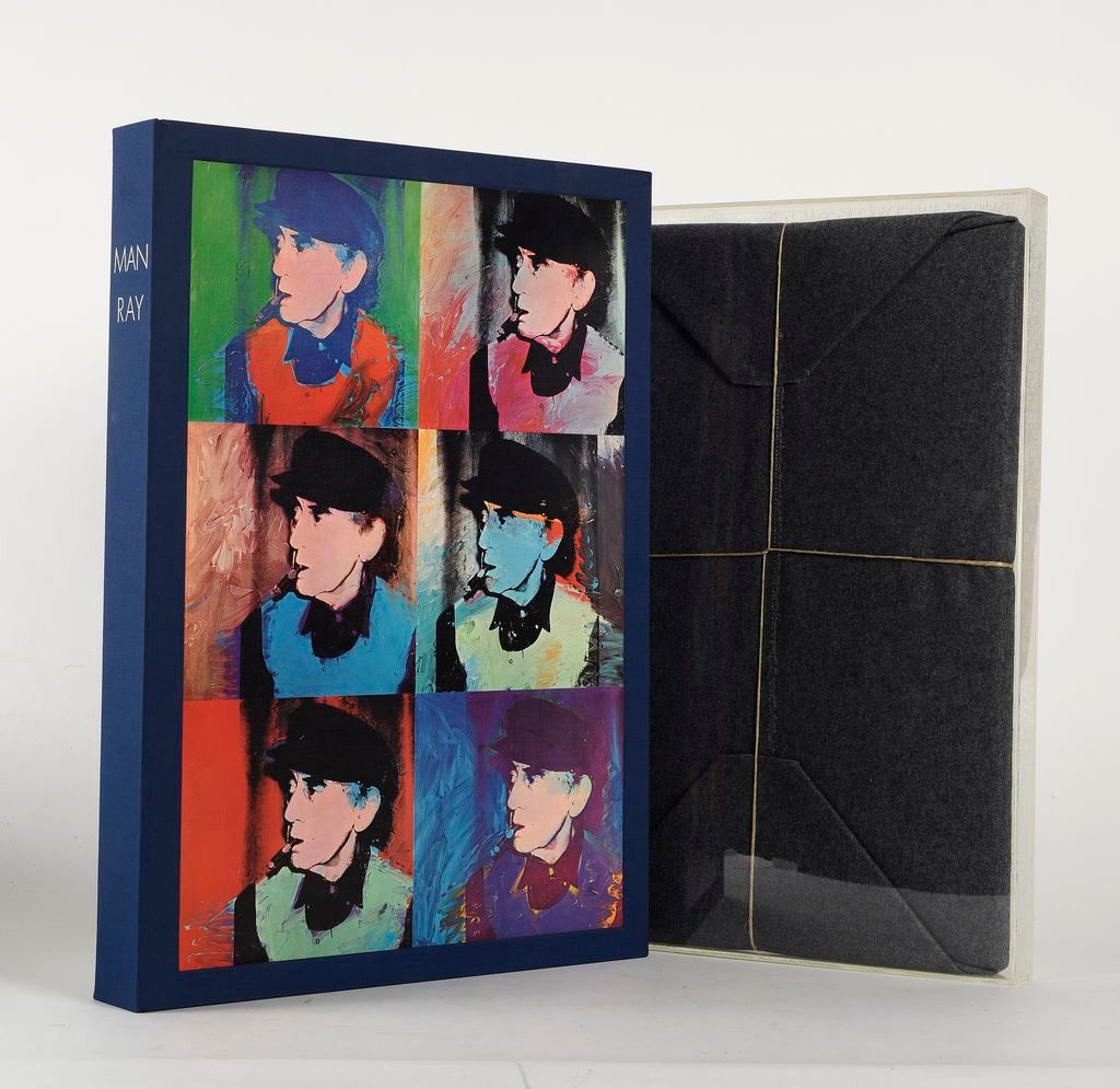 Grand in folio présenté dans un bel étui-boite illustré au premier plat d’un portrait de Man Ray par Andy Warhol, 26 pages non numérotées du texte de Miller.
