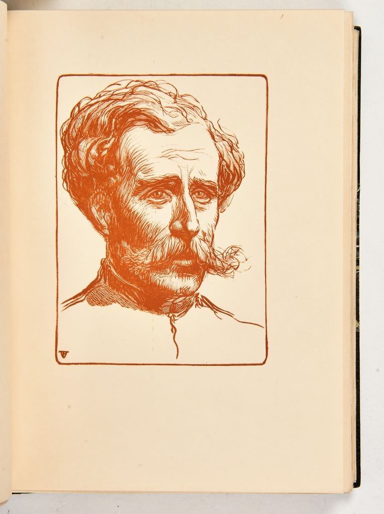 Superbe exemplaire parfaitement relié de ce catalogue rendant hommage au travail d’édition principalement d'Édouard Pelletan, importante personnalité du monde de la bibliophilie du début du 20ème siècle. Illustré d’un portrait dessiné et gravé par P. E. Vibert, avec une préface de Clément-Janin.