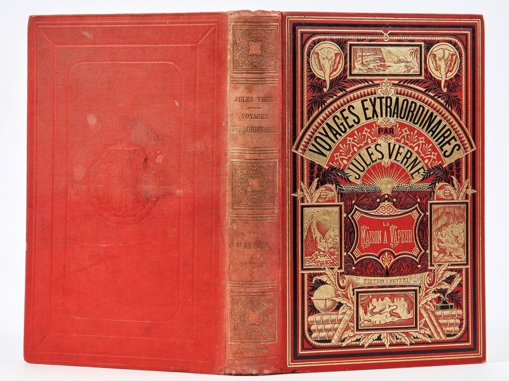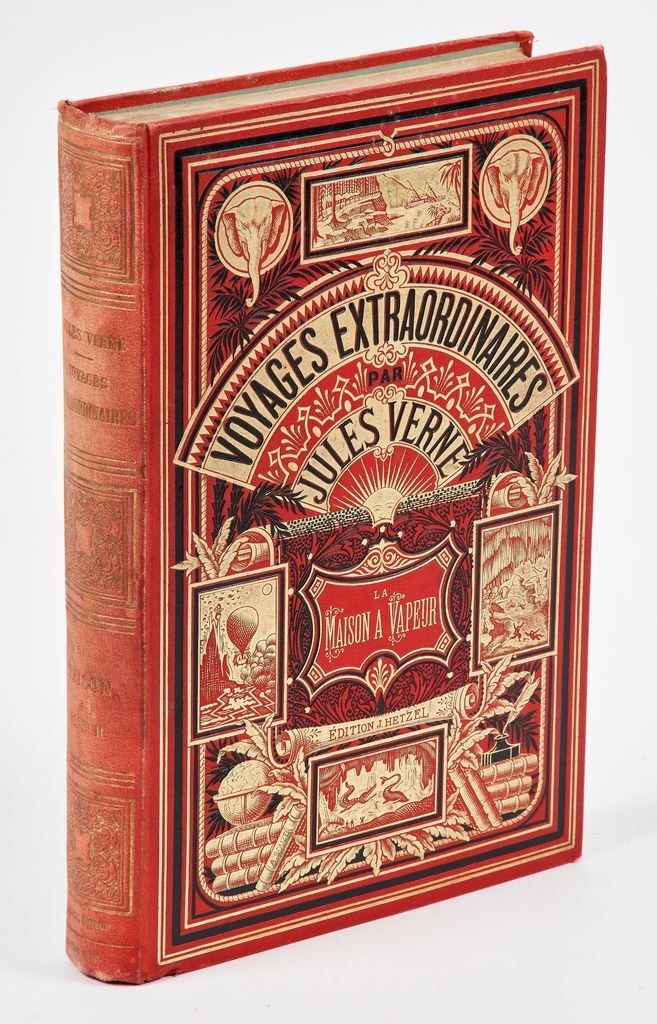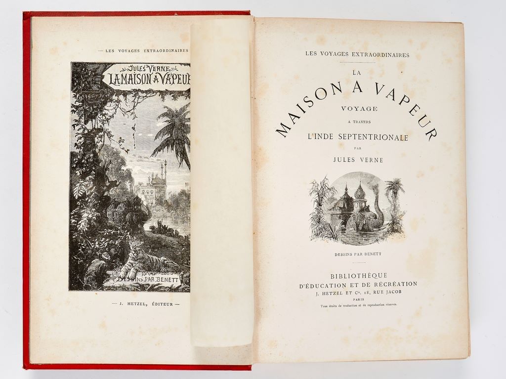Collection Hetzel, Paris, s.d. (vers 1914) - Bon exemplaire dans une reliure signée Engel en cartonnage grand in-8 polychrome avec décor aux deux éléphants au premier plat, bon état général, quelques usures au dos, un peu sali. Illustré de dessins par Benett. Rousseurs.