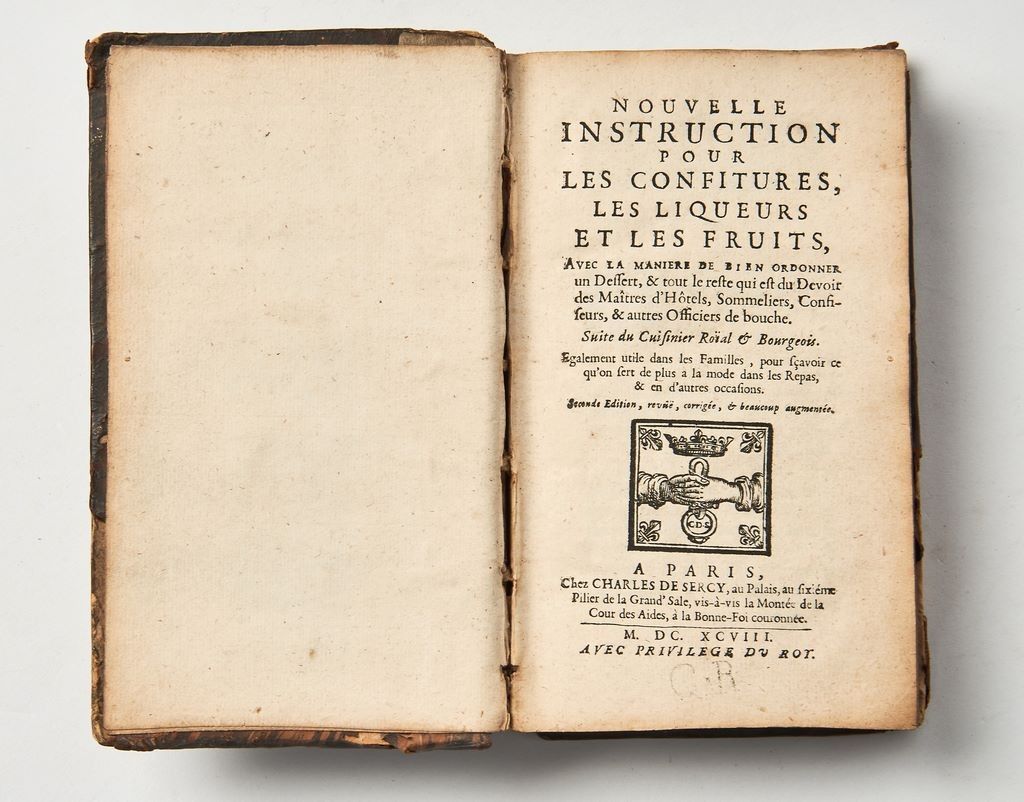 Chez Charles de Sercy, Paris, 1698 - Seconde édition très augmentée et devenue rare de cet ouvrage donnant la manière de bien ordonner un dessert et ce qui rapporte aux tâches du maître d’hôtel, sommelier, confiseur etc sous Louis XIV. On y trouve toute la confiserie de l'époque, avec des recettes très détaillées. Le dernier titre de l'ouvrage, rajouté dans cette édition, est une instruction pour les desserts.