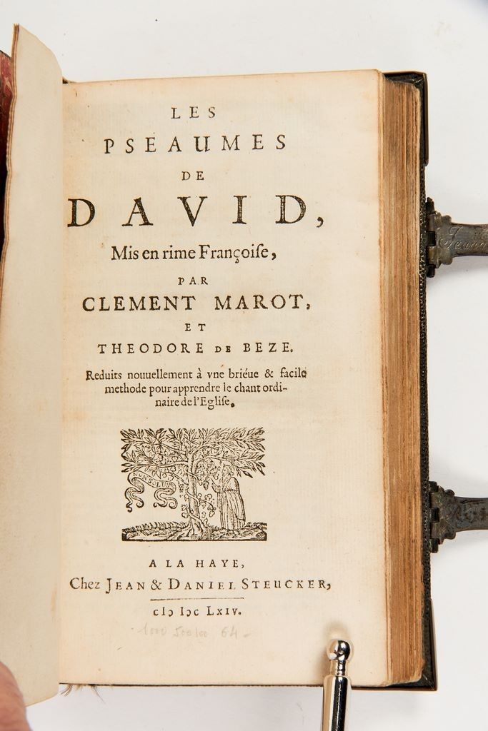 [RELIURE] Clément MAROT et Théodore de BEZE- Les pseaumes de David mis en rime françoise réduits nouvellement à une briève et facile méthode pour apprendre le chant ordinaire de l'Église