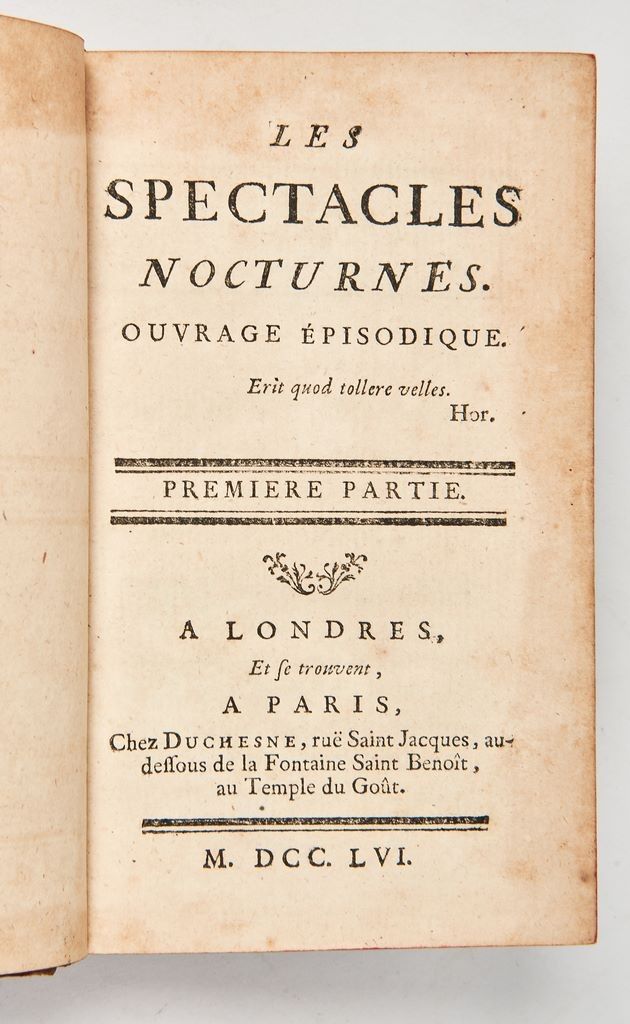 A Londres et se trouvent à Paris chez Duchesne, 1756 - Très rare édition originale de cet ouvrage peu documenté à rapprocher des publications libertines du temps. Exceptionnel exemplaire dans une reliure strictement d’époque (réalisée en Saxe ou Flandres) aux armes de Sable au Lion d’Or arborant les initiales W.G., provenance non identifiée, certainement d’un chevalier de l’ordre de Malte. Minimes frottements, très bon état général et ors particulièrement bien préservés.