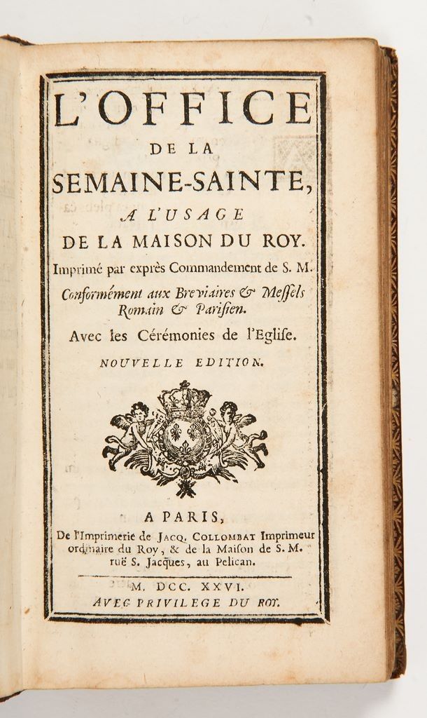 Jacq. Collombat, Paris, 1726 - Très bel exemplaire en reliure plein maroquin aux armes royales, roulette dorée encadrant les plats, dos à 5 nerfs et caissons aux fleurs de Lys, tranches dorées. Intérieur très frais.