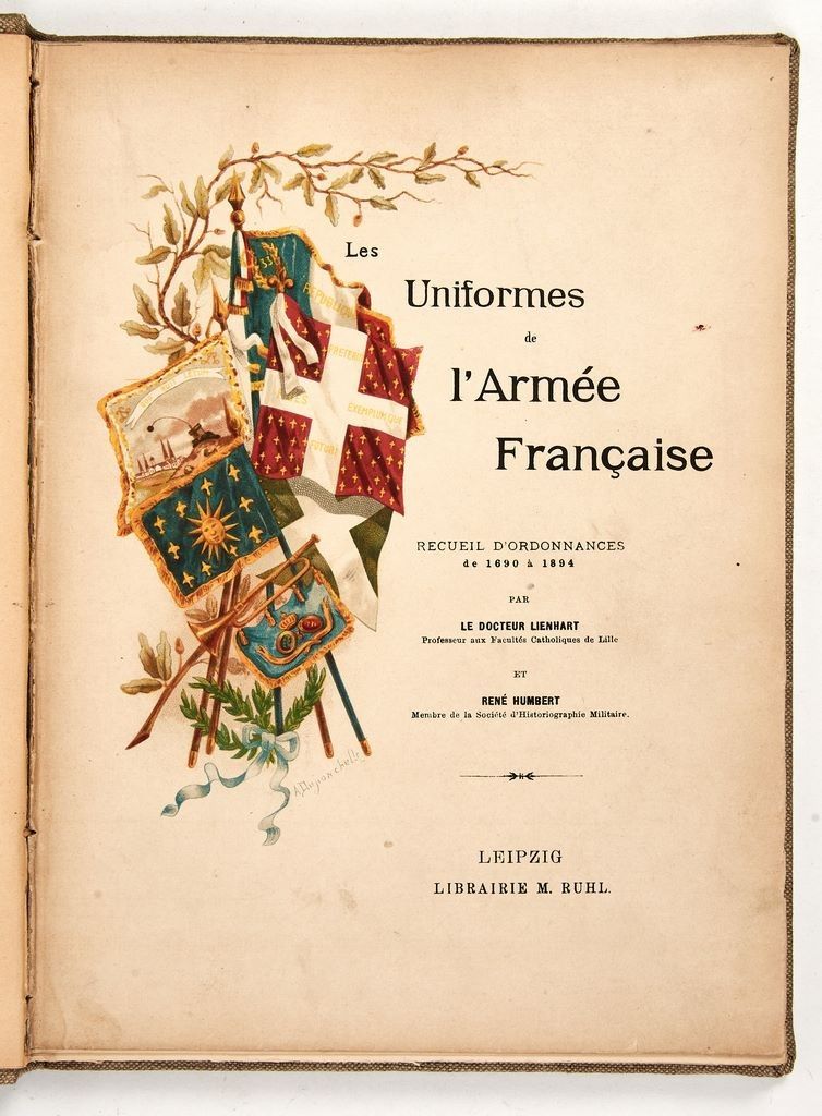 Chez M. Ruhl à Leipzig, 1897-1906 – Très bel exemplaire de l'édition originale, bien complète de ses 5 volumes de texte et 5 volumes de planches, de ce magnifique ouvrage très abondamment illustré, un vrai classique de l'uniformologie. Les 5 volumes sont en jolies reliures uniformes en pleine toile, pièces de titre.