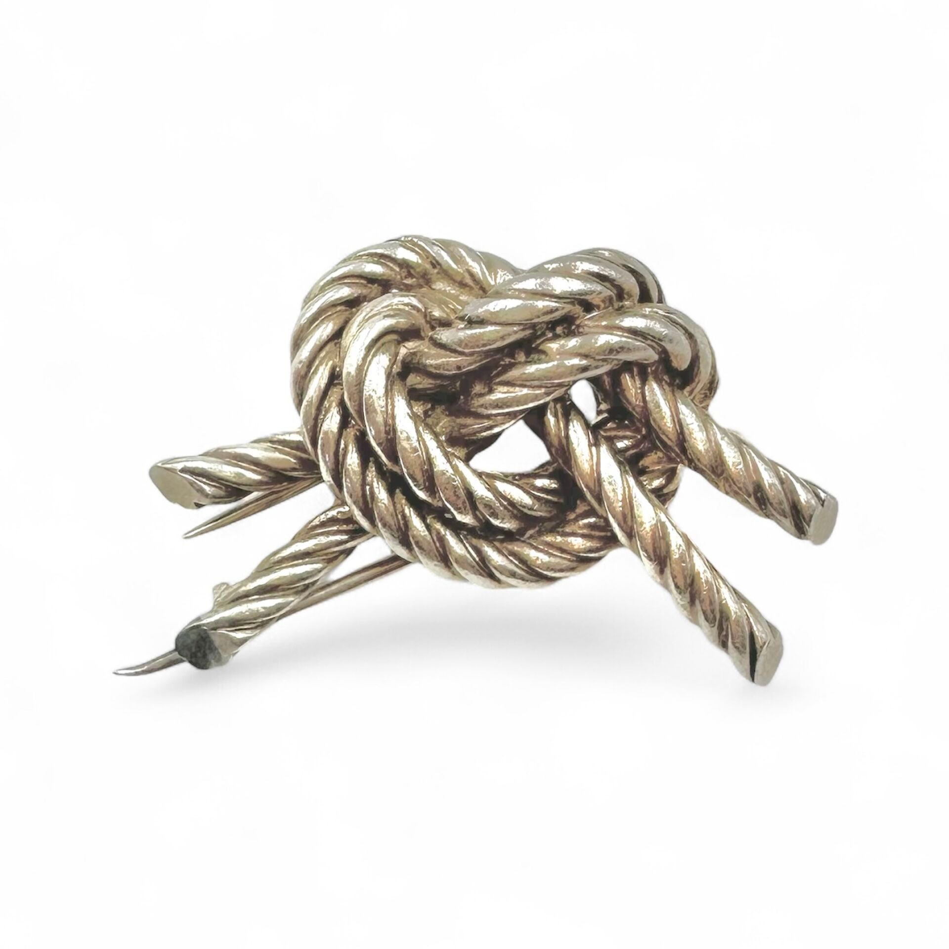 Clip de revers en argent (800) figurant un noeud en cordage tressé.