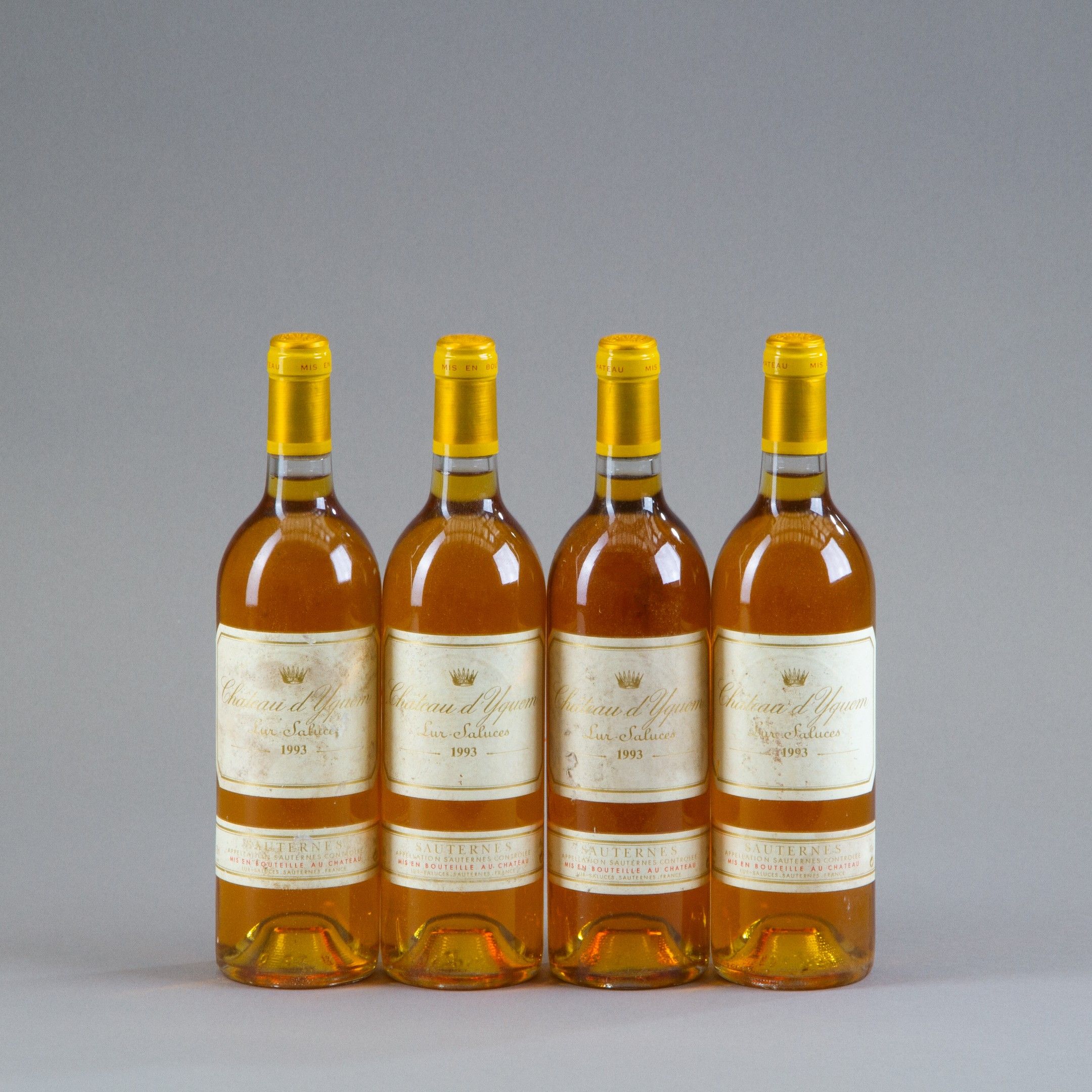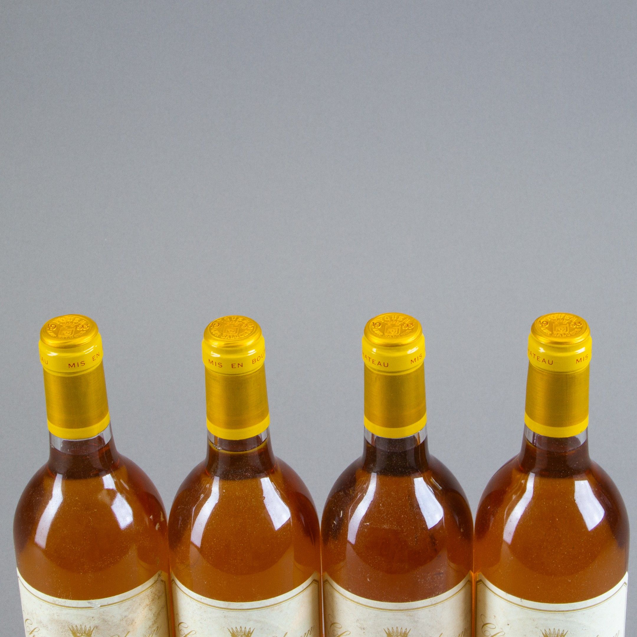 4 bouteilles Château D'YQUEM, 1° cru supérieur Sauternes 1993.
