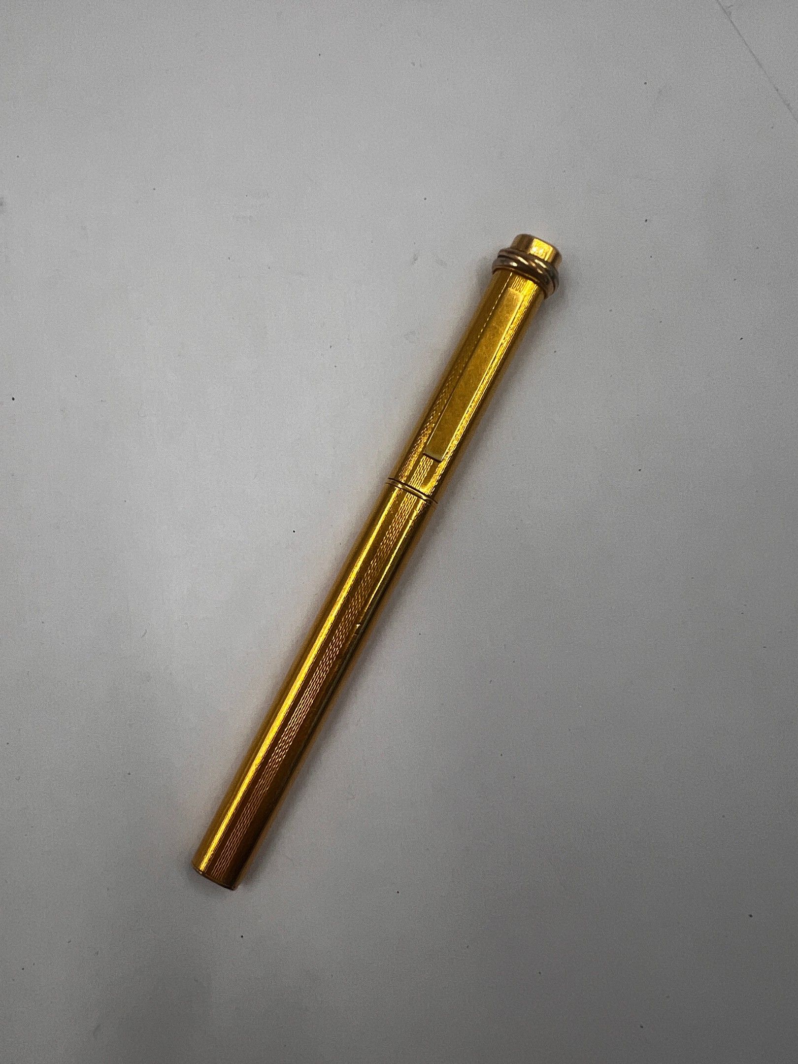CARTIER Stylo modèle Trinity en métal doré. Signé, numéroté 001981. Légers enfoncements.