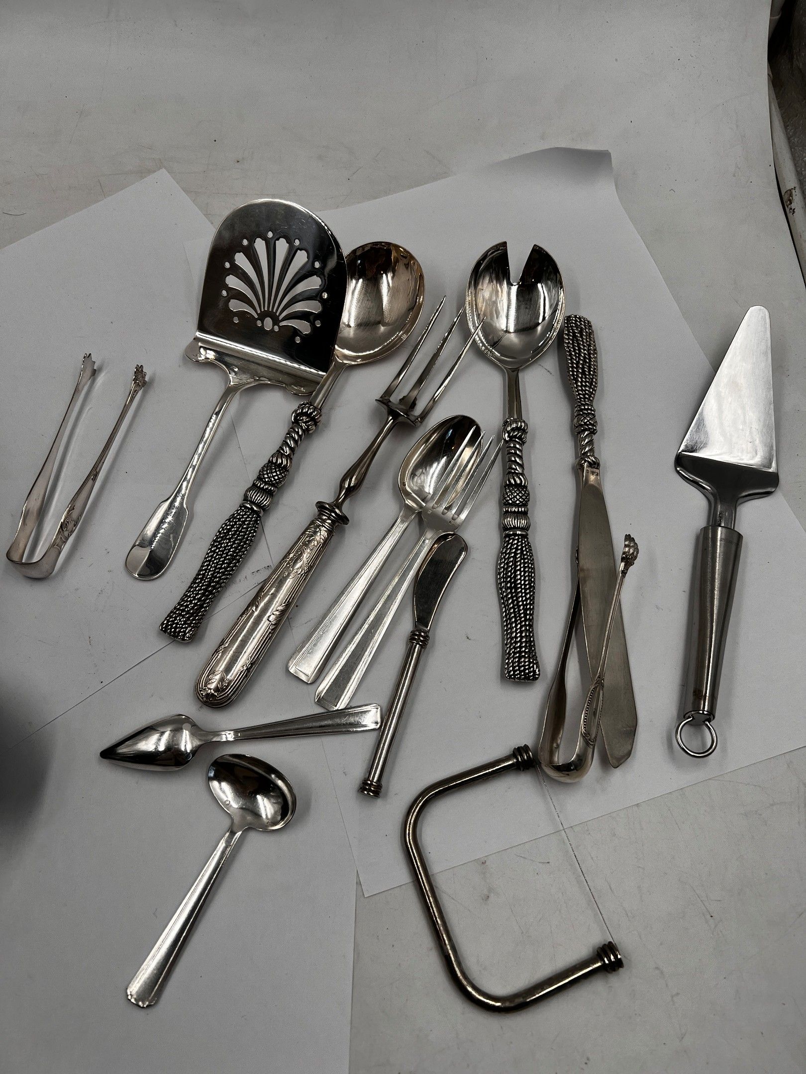 Réunion de couverts en métal argenté Dont pelle à gateau Christofle et couverts de service En l'état