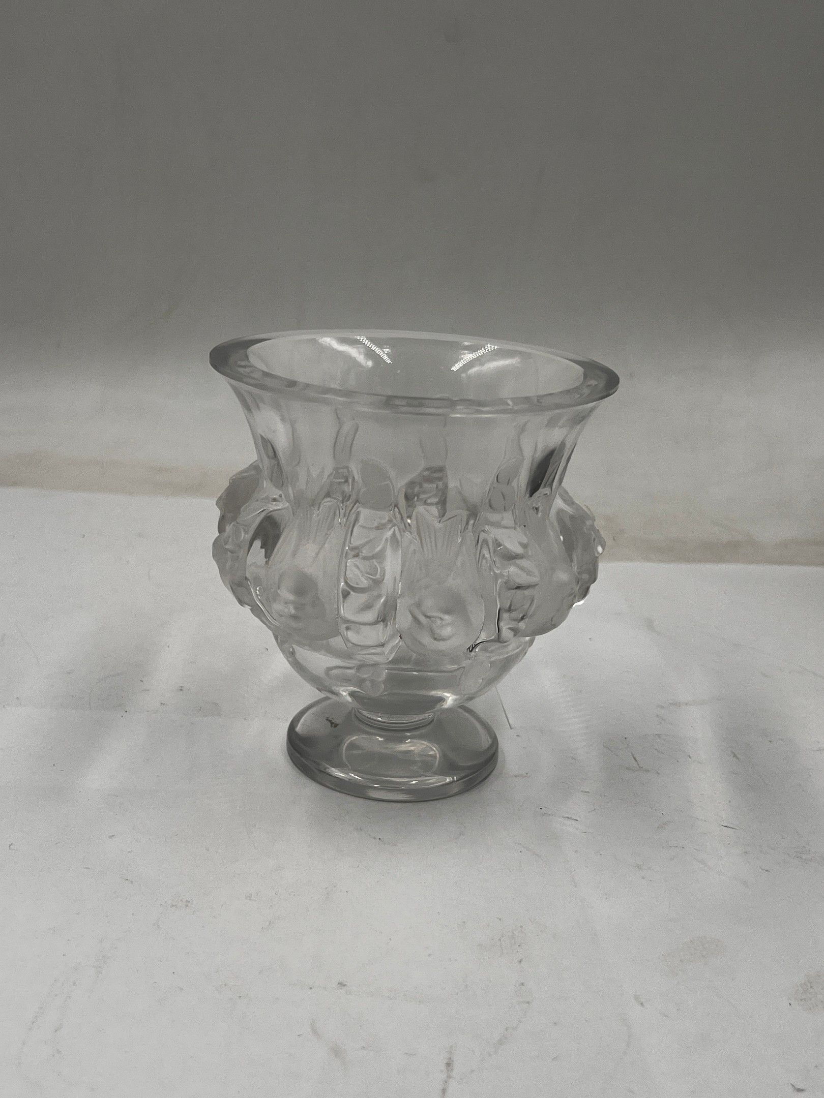 LALIQUE FRANCE VASE MODÈLE DAMPIERE Cristal moulé et satiné. Signé. Hauteur. 12 cm.
