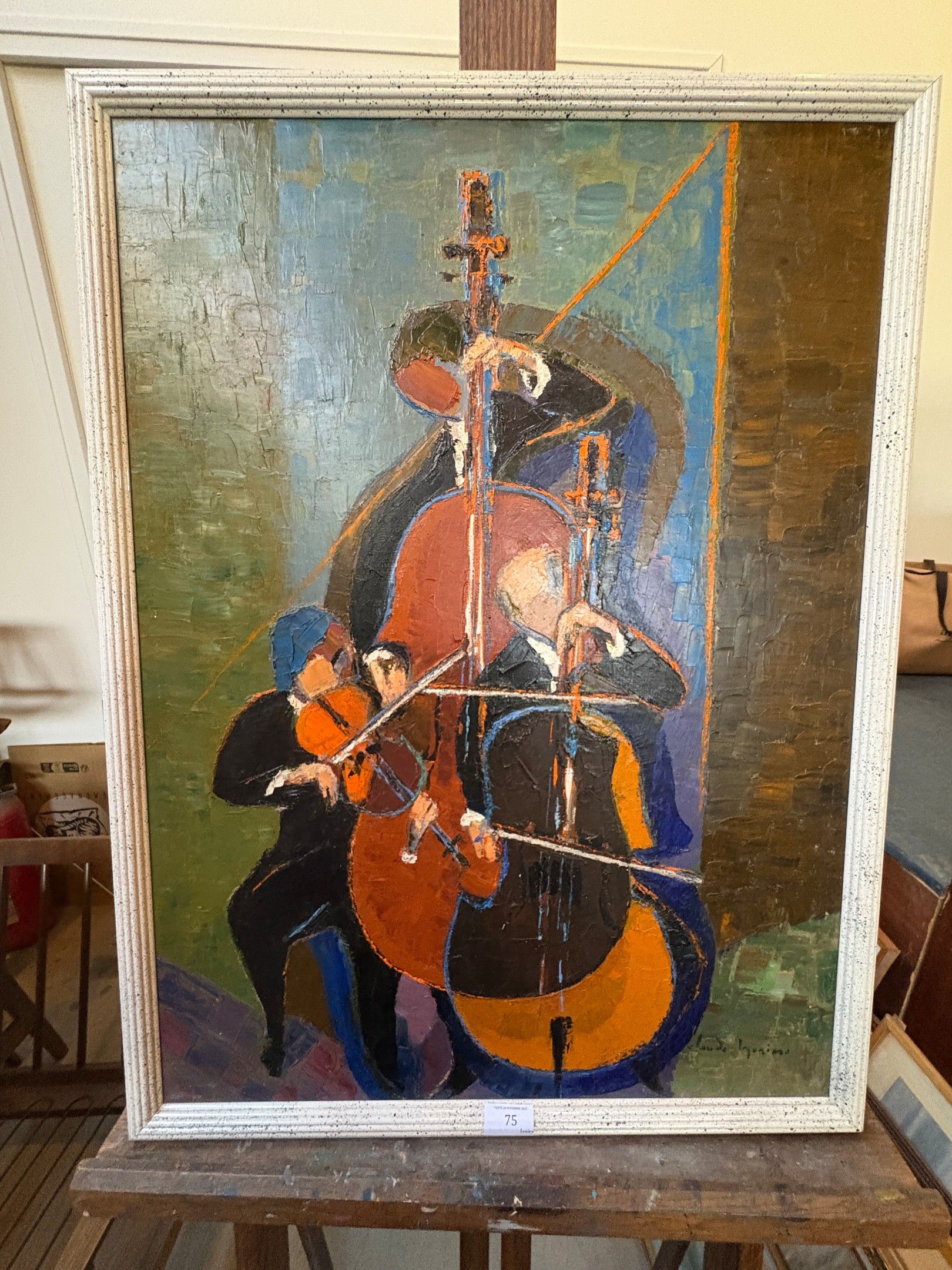 CLAUDE MORRISSE (Xxe siècle) Trio à cordes Huile sur toile, …