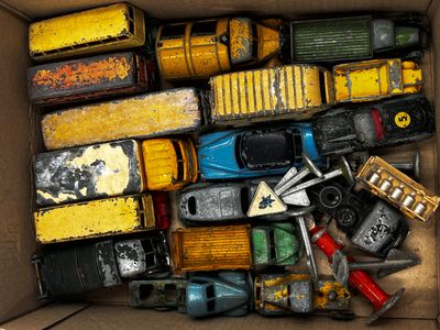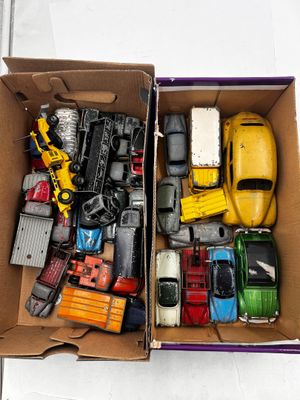 Réunion d'automobiles miniatures dont dinky toys. Un carton.