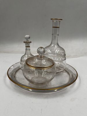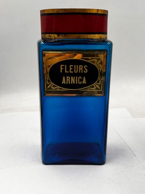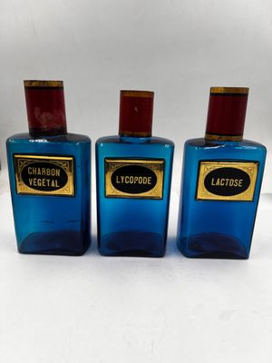 Réunion de trois pots à pharmacie rectangulaire en verre ble…