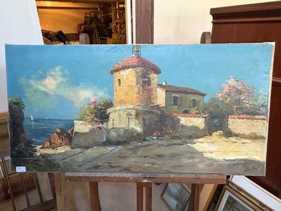 Marc AREL (Xxème siècle) Villa en bord de mer