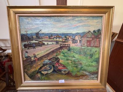 Renée UNIK (XXème siècle) Honfleur Huile sur toile signée en…