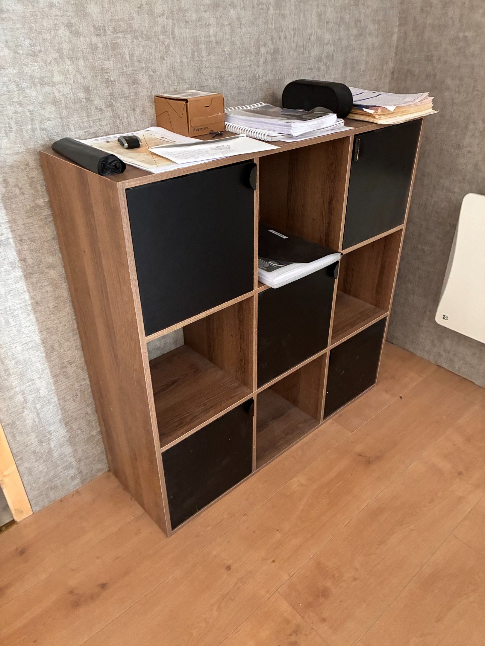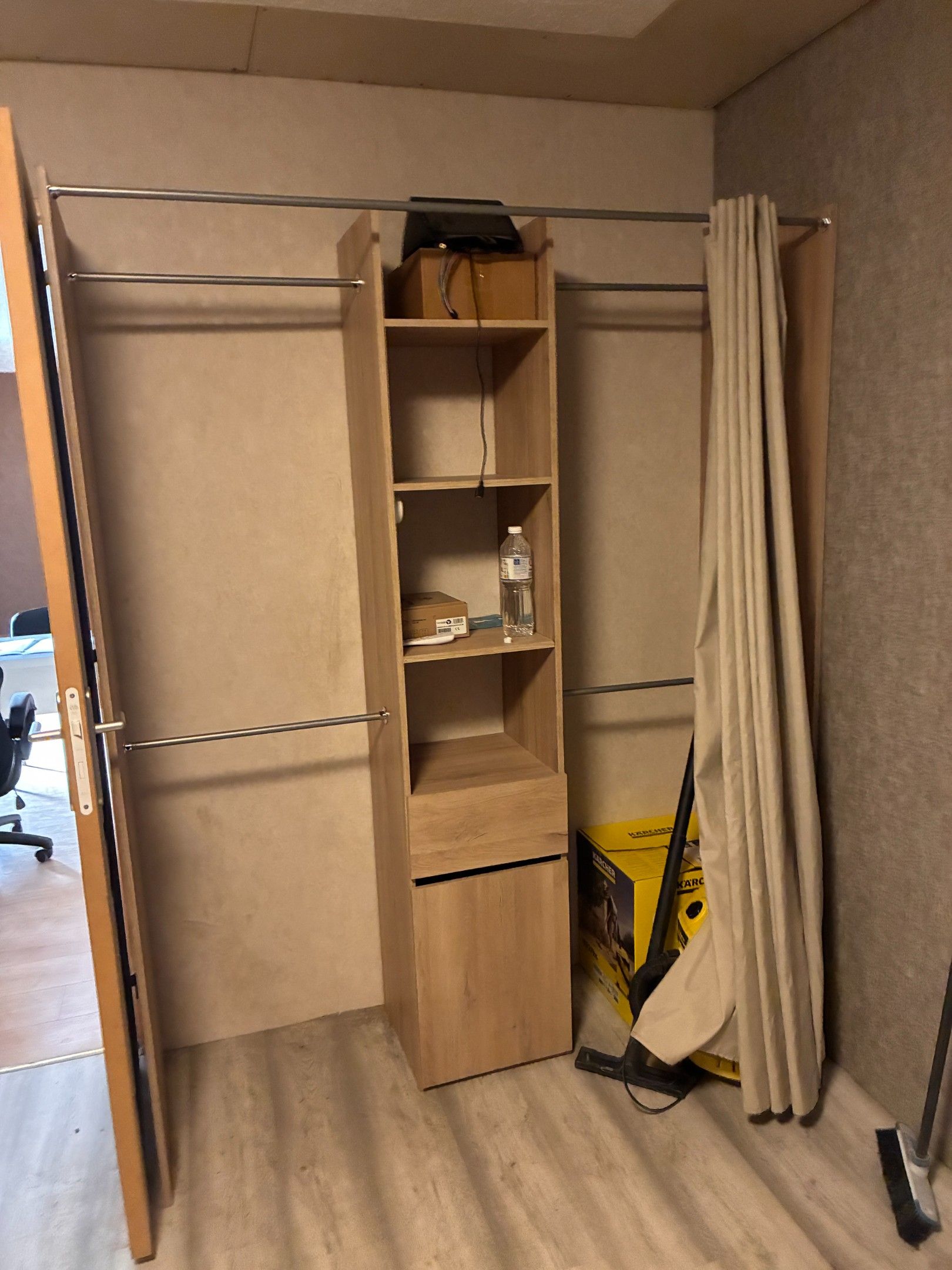 Mobilier de bureau : bureau métal et bois moderne, table de travail piètement métal plateau mélaminé gris, table basse piètement métal plateau bois tablette d’entrejambe grillagé, cinq chaises visiteur, étagère asymétrique mélaminé finition chêne, étagère 9 cases mélaminé finition chêne, fauteuil de bureau, dressing, petite étagère mélaminé blanc, table et tabouret mélaminé chêne, petit canapé. Frais en sus 14.28%. TVA Récupérable. Pas d’expédition possible. L'enlèvement et le démontage des lots est à la charge de l'acquéreur et doit être réalisé dans les règles de l'art, sans dégradations et sécurisé après démontage. C'est l'acquéreur qui est responsable des éventuels dégâts commis de son fait. L'ensemble des lots est vendu en l'état et sans garantie de fonctionnement. ENLEVEMENT IMPERATIF le Mardi 25 novembre à 9h30