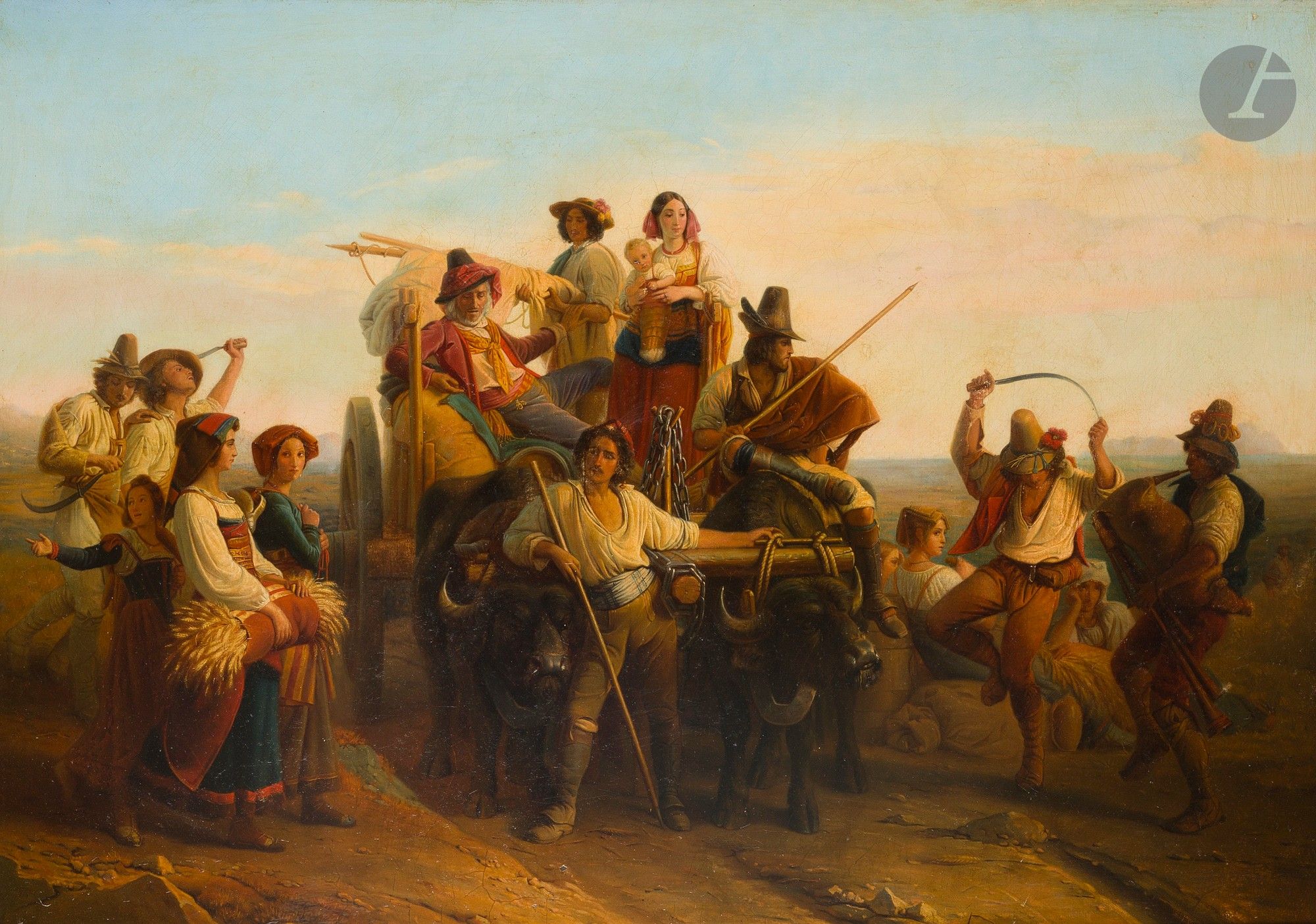 École française du XIXe siècle, d'après Leopold ROBERT L'Arrivée des moissonneurs dans les marais Pontins Toile 60 x 85,5 cm